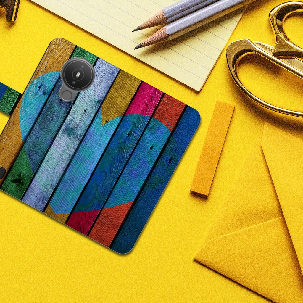Nokia 1.4 Bookstyle Case met pasjes Wood Heart