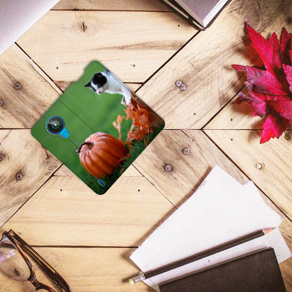 Een huisdier is goed voor je hart: de hoeveelheid stress in je lijf kan aanzienlijk verlagen als je een kat hebt rondlopen. Zelfs het aaien van een kat kan het stressniveau in je lijf al doen verlagen. De kat op dit smartphone hoesje is sowieso zeer aaibaar, gezien de blik en de houding van het dier. De herfstachtige bladeren en de pompoen geven dit stand hoesje met design een natuurlijke uitstraling. Jouw smartphone is met een Nokia 1.4 Hoesje maken zeer duurzaam te noemen. Er is geen betere bescherming dan dit hoesje, dat ook nog eens 1 opbergvakje heeft en een standaard. Alle zijden van dit hoesje zijn bedrukt. Het hebben van een kat kan verzachtend werken, bijvoorbeeld na een heftige gebeurtenis. Het hoesje is aan de binnenzijde van TPU (houder).