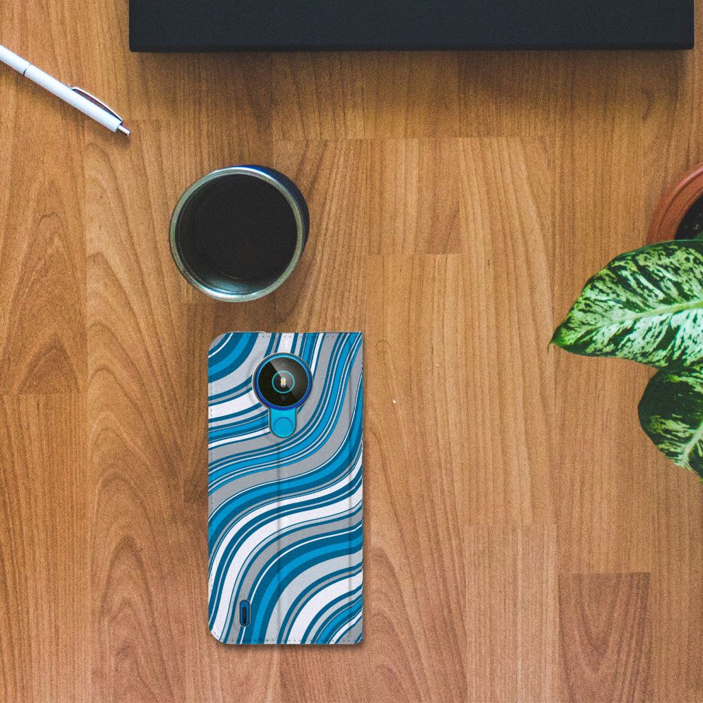 Zeer cool, dit hoesje met vooral blauwe kleuren, die in een golvende beweging jouw telefoon van een mooie uitstraling voorzien. Tijdens een zonnige vakantie aan zee is jouw smartphone perfect beschermd met dit telefoonhoesje. Het design Waves Blue van dit smartphone hoesje doet lichtjes denken aan een lolly, waarmee je een klein kind zeer blij maakt. Jouw Nokia 1.4 zal er ook zeer vrolijk uitzien samen met dit design hoesje. De witte en grijze kleuren staan in mooi contrast met het blauw, waardoor de uitstraling van deze accessoire zeer mooi is. Ook voor andere kleuren kun je natuurlijk uitstekend terecht in ons assortiment. Het design staat op een Hoesje met Magneet. Deze case beschermt jouw telefoon aan alle kanten en beschikt over een 1 opbergvakje en een speciale standaard. Het hoesje wordt afgesloten met een magneet aan de binnenzijde. De houder aan de binnenzijde is van TPU.
