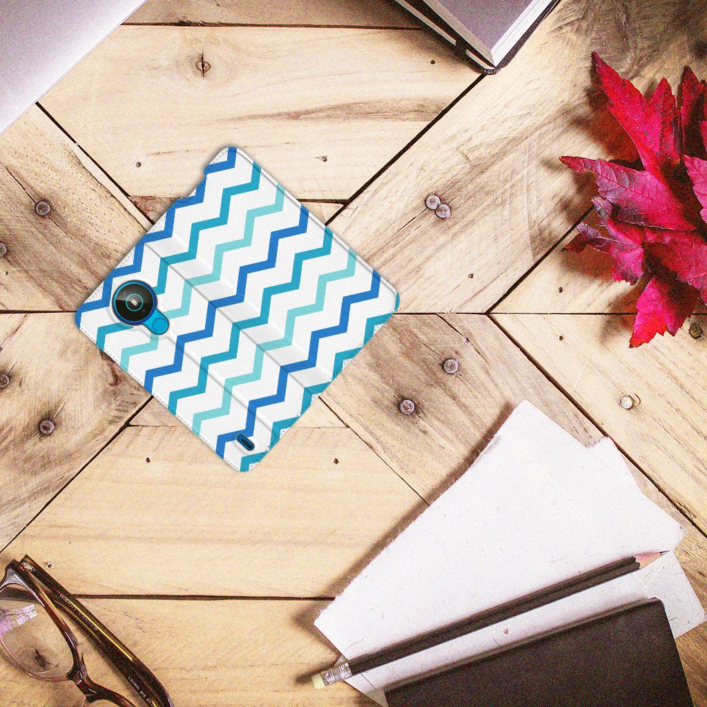 Dit zigzag blauwe design hoesje is speciaal ontworpen voor jou. We hebben bewust verschillende stijlen blauw gebruikt, zodat er voldoende sprake is van variatie. Dit blauwwitte Hoesje met Magneet ziet er super strak uit. Dat kan ook niet anders, als je weet dat onze zeer talentvolle designer er hoogstpersoonlijk voor verantwoordelijk is. Hij schudt wekelijks nieuwe designs uit zijn mouw en dit zigzag blauwe hoesje is een van zijn fraaiste creaties. Een heel dik design hoesje, al zeggen we het zelf. Valt dit blauwwitte design hoesje goed bij jou? Bestel het dan vandaag nog en je hebt het morgen in huis. Het design staat op een stand case. Deze case beschermt jouw Nokia 1.4 aan alle kanten en beschikt over een 1 opbergvakje en een speciale standaard. Het hoesje wordt afgesloten met een magneet aan de binnenzijde. De houder aan de binnenzijde is van TPU. Alle zijden van de stand case worden bedrukt.