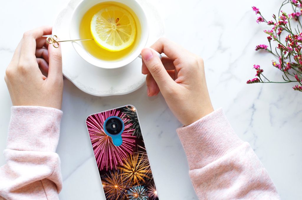 Deze Nokia 1.4 Silicone Back Cover levert gegarandeerd Vuurwerk op. Kijk alleen al eens naar de print van siervuurwerk, in zeer veel verschillende kleuren. Als je dit hoesje ziet kun je bijna niet geloven dat sommige gemeenten in Nederland overwegen om vuurwerk te verbieden. Er gebeuren weliswaar ongelukken mee, maar zoiets schitterends als op deze tpu case met vuurwerk wil je toch gewoon niet missen. Bovendien beschermt dit hoesje jouw smartphone ook nog eens erg goed. De bovenkant van dit hoesje wordt bedrukt, de zijkanten blijven doorzichtig. De case is gemaakt van schokabsorberend materiaal en past altijd in je broekzak. Onder alle omstandigheden zal deze TPU case perfect functioneren, ook als je met nieuwjaar vuurwerk aan het afsteken bent. Zorg dan overigens wel dat je zelf ook voldoende afgeschermd bent van het vuurwerk.