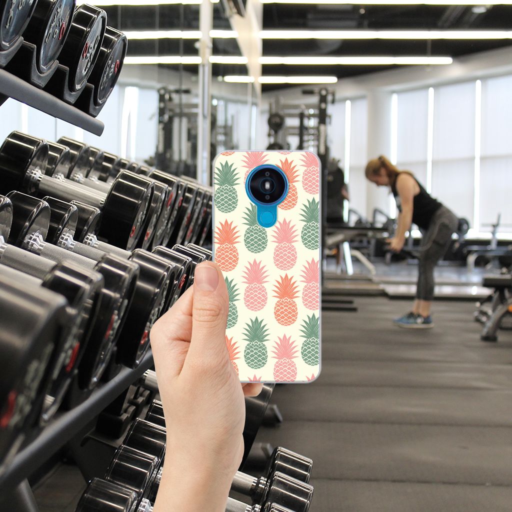 Ananas is een woord uit het Tupi, de taal van de Tupi-indianen, en betekent uitmuntende vrucht. Dit fruit van zeer hoge kwaliteit staat op onze superieure boekhoesjes, stand cases, hard cases en TPU cases. Jij blijft er gezond uitzien als je zo nu en dan een hap neemt van een Ananas , jouw smartphone blijft tip top in orde als je er een leuk telefoonhoesje omheen doet. Een ananas heeft stevig, veerkrachtig vruchtvlees. Een beetje te vergelijken met het TPU in onze hoesjes. TPU is elastisch materiaal, dat zeer buigzaam is. Vandaar dat het zeer schokbestendig is. Het ananas design staat op een staat op een TPU case. Deze Nokia 1.4 Siliconen Case wordt alleen aan de bovenkant bedrukt en is zeer flexibel. De randen van het hoesje blijven transparant.