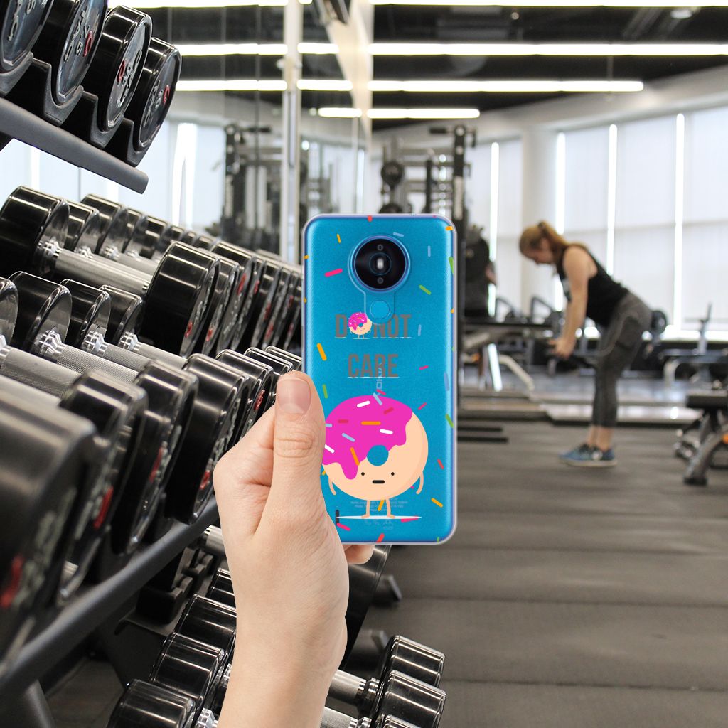 De cartoon met Donut op dit design hoesje geeft jouw smartphone een grappige en vrolijke uitstraling. De Nokia 1.4 Siliconen Case zorgt ervoor dat je je schouders op zult halen als je telefoon een keer op de grond valt. Omdat er geen schade zal optreden kun jij je weg weer heel makkelijk vervolgen. De grappige Donut Care tpu case is nergens anders te krijgen. Het design is namelijk van de hand van onze eigen ontwerper. Daarnaast zal de case jouw smartphone goed beschermen. Een Donut Care tpu case is een zeer flexibel hoesje. Dit komt onder andere door het elastische en onbreekbare materiaal. Verder is de case zeer praktisch. Wat denk je bijvoorbeeld van de opstaande randen aan de voorkant. Verder beschikt de case ook nog eens over alle noodzakelijke uitsparingen. Ook kun je zelf je eigen unieke hoesje ontwerpen, met eigen cartoons, foto’s en teksten. Een Donut Care tpu case wordt alleen aan de bovenkant bedrukt. De randen blijven volledig doorzichtig.