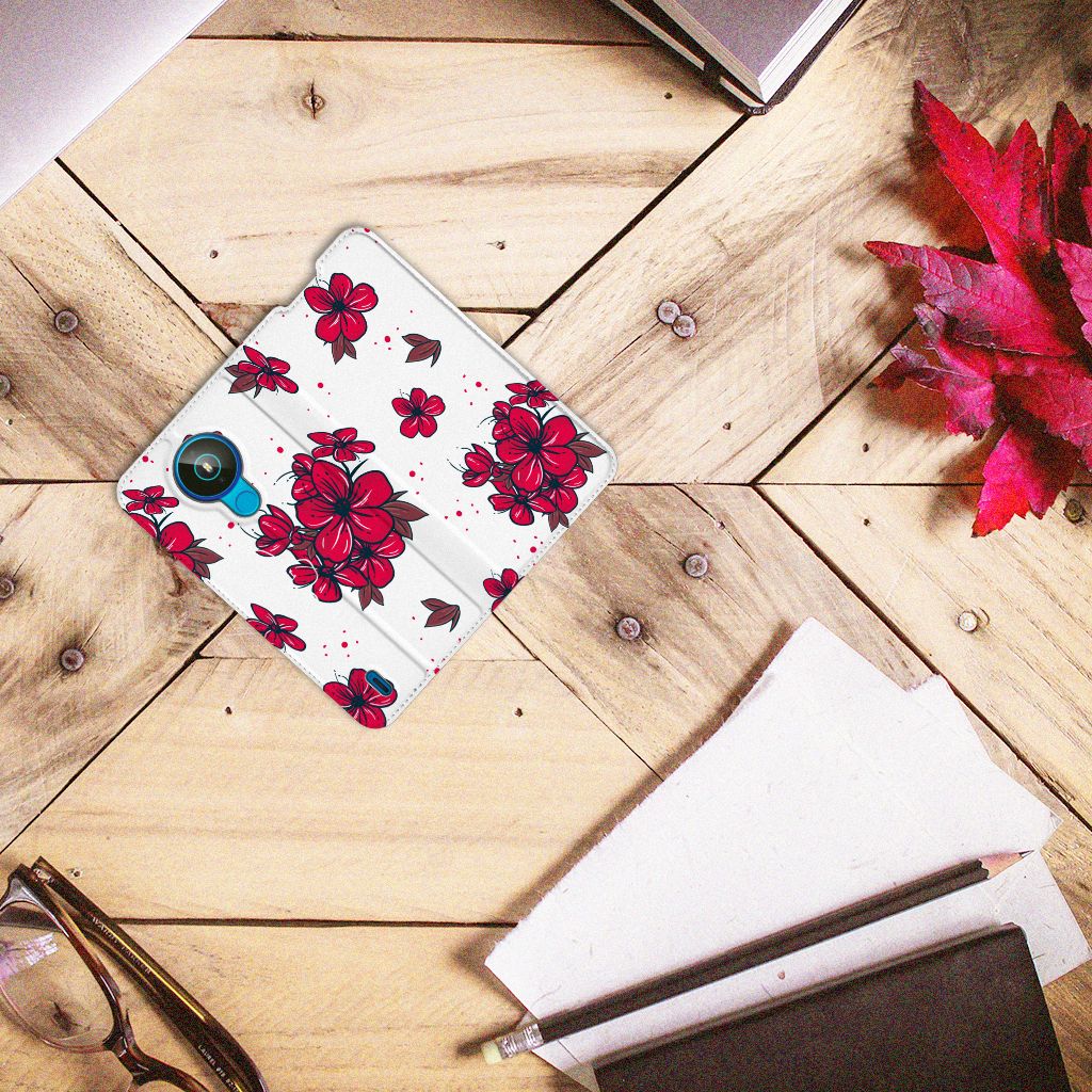 Wie denkt aan Japan, denkt al gauw aan die prachtige kersenbomen die in het begin van de lente in bloei staan en het land hullen in een prachtige zee van bloesem. Wie elke dag wil genieten van deze mooie kersenbloesem, kan natuurlijk ook kiezen voor dit mooie telefoonhoesje! Dankzij de witte achtergrond knallen de rode bloemetjes er mooi uit. Dit blossom red-design staat op een Smart Cover voor de Nokia 1.4. Dit populaire smartphonehoesje met het heeft één vakje voor een pasje of briefgeld en is aan alle zijden bedrukt. Met de standcase zet je je telefoon gemakkelijk neer, zodat je je handen vrij hebt als je bijvoorbeeld een video wilt kijken. De binnenkant van de standcase is van grijs PU-leer. Dat is fijn, omdat je daardoor niet snel vlekken ziet op je hoesje.