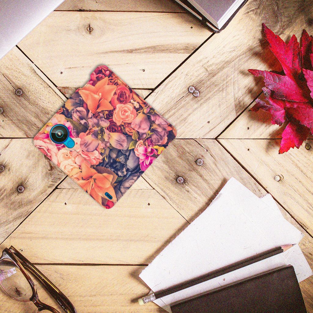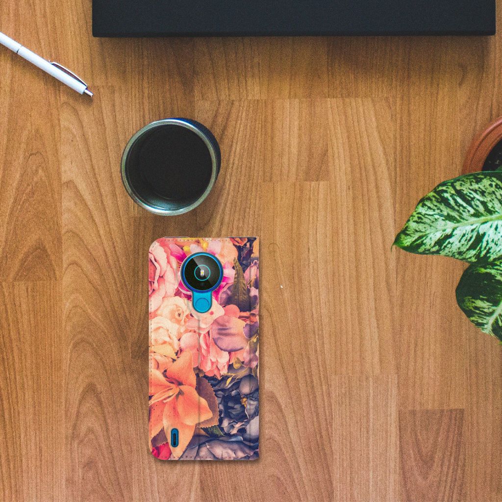 Dit Bosje Bloemen doet een mens en zijn smartphone goed. De oranje, paarse en roze bloemen op deze Nokia 1.4 Smart Cover geven jouw smartphone een zeer sierlijke uitstraling. Je wordt er ook meteen vrolijker van als je aan het appen, mailen of aan het bellen bent. Valt dan je telefoon op de grond, dan zal er dankzij de stand case met oranje, paarse en roze bloemen geen schade ontstaan. Onze stand cases met oranje, paarse en roze bloemen bieden de allerbeste bescherming en zijn heel praktisch, wat blijkt uit onder meer het vakje aan de binnenkant en de handige standaard waarmee je de smartphone rechtop op tafel neer kunt zetten. De oranje, paarse en roze bloemen passen goed op alle zijden van de case. Op deze stand case van leer en TPU (houder aan de binnenkant) is het ook mogelijk je eigen ontwerp te zetten. In no time maak je zelf een stand case met daarop foto’s van jouw favoriete bloemen.