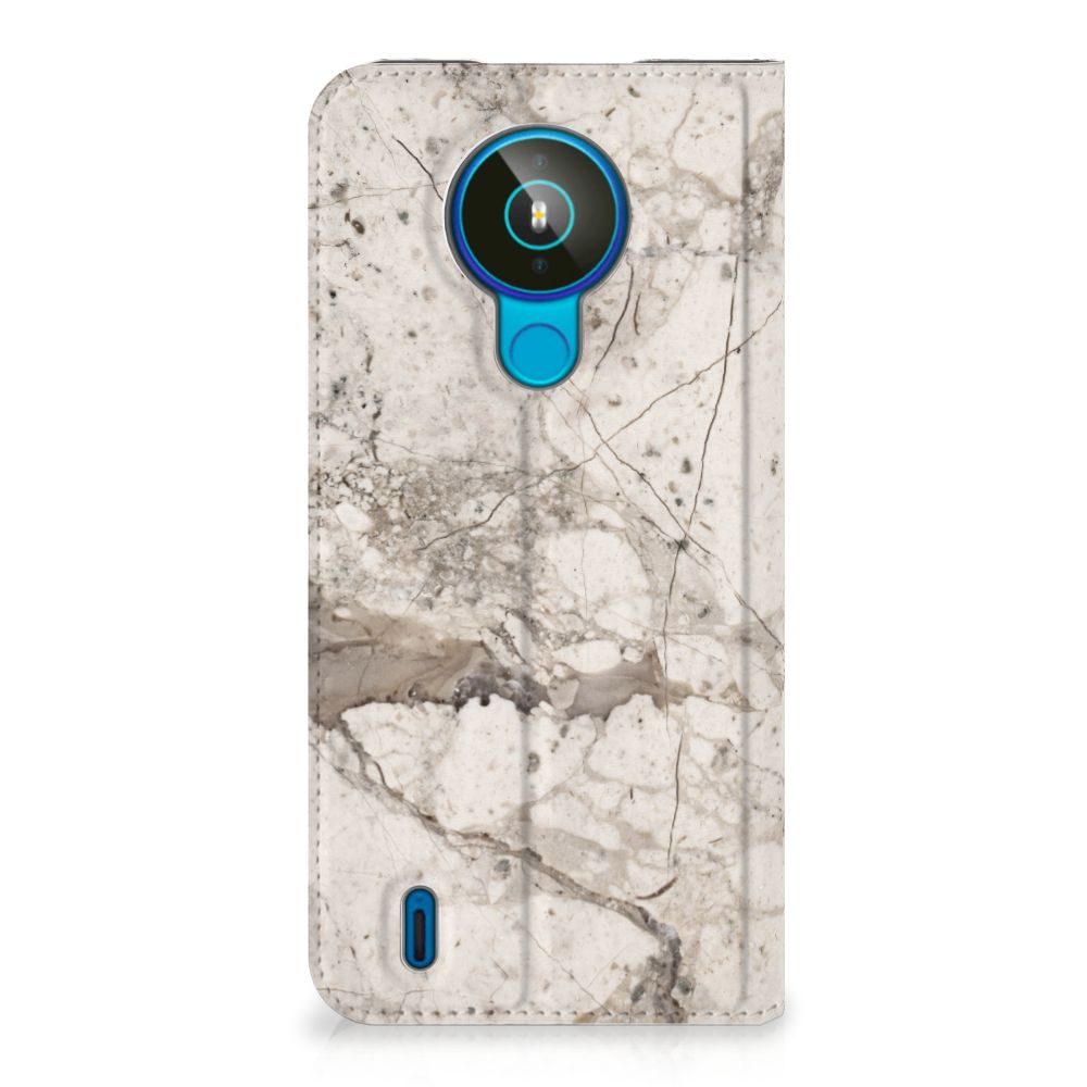 Dit design hoesje met Marmer Beige is voor de artistieke personen onder ons. De Grieken en Romeinen wisten het steen al te waarderen door het als bouw- en bekledingsmateriaal toe te passen. Naast het witte Carrara marmer met haar zacht grijze geaderde belijning zijn de diverse marmersoorten in een ruim kleurenpallet te krijgen. We hebben verschillende kleuren op design hoesjes gezet, zoals in dit geval beige marmer. Dit is een Nokia 1.4 Standcase met marmer in beige kleur. Het marmer wordt bedrukt op alle zijden van een stand case, die beschikt over 1 vakje voor een pasje en toebehoren en een magnetische sluiting aan de binnenkant. Verder heeft de case een houder van TPU. De rijkheid aan kleuren en varianties in afwerking geeft designers de vrijheid om met marmer hele mooie architectonische projecten te realiseren. Wij hebben onze designer ook veel vrijheid gegeven. Het resultaat zie je terug in deze stand case met beige marmer, dat de ideale bescherming voor jouw smartphone biedt.