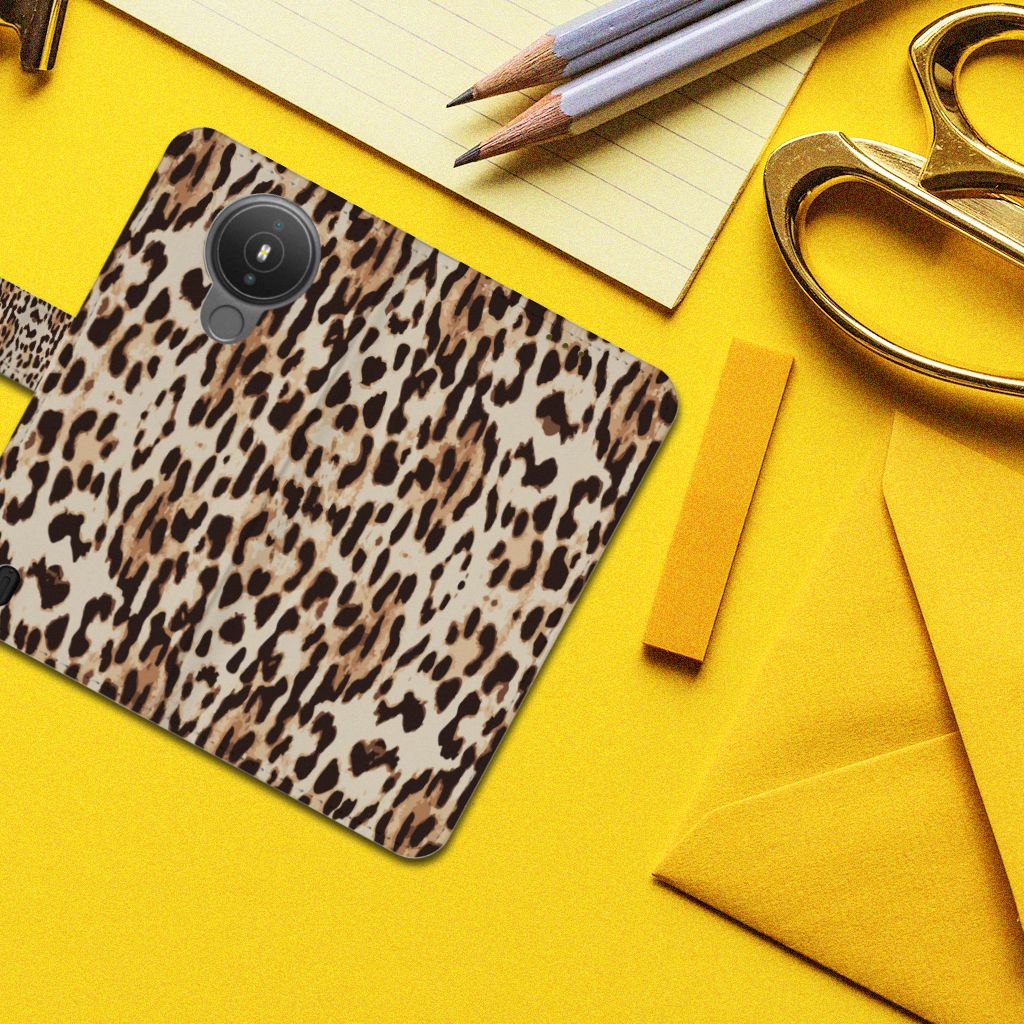 Nokia 1.4 Telefoonhoesje met Pasjes en met magnetische sluitclip Leopard