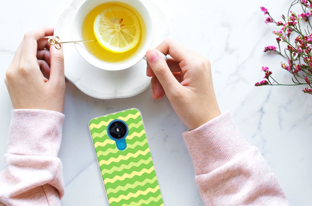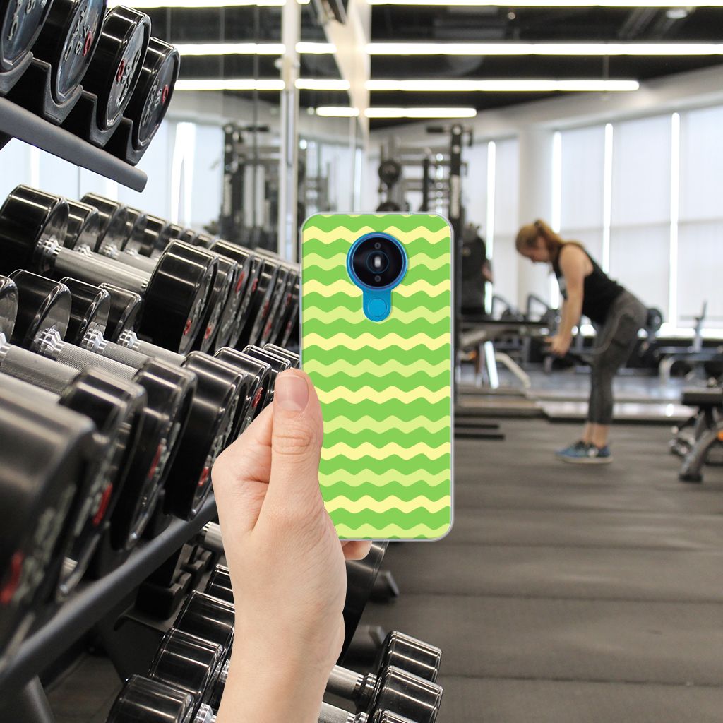 Dit groene design hoesje met groene golven is speciaal ontworpen voor jouw telefoon. We hebben een vleugje geel toegevoegd, zodat er sprake is van variatie. Dit Waves Green hoesje ziet er flitsend uit. Dat kan ook niet anders, als je weet dat we veel energie steken in het bedenken van originele designs. Een heel strak Nokia 1.4 TPU bumper, met zeer veel opties. Past dit groene design hoesje met golven goed bij jou? Bestel het dan vandaag nog, tegen zeer lage kosten. Het design staat op een TPU case. Dit hoesje wordt alleen aan de bovenkant bedrukt en is zeer flexibel. De randen van het hoesje met groene golven blijven transparant en worden niet bedrukt. Met dit hoesje past jouw telefoon altijd in je broekzak.