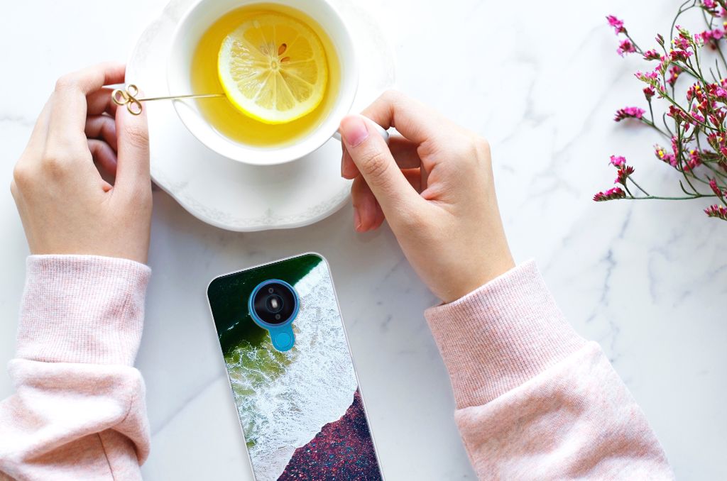 Ben je een beetje een artistiek type? Dan kan je wel eens enthousiast raken van dit smartphonehoesje. ‘Sea in Space’, zo noemt onze grafisch designer dit ontwerp. Dus mensen die van zon en zee kunnen genieten en tegelijkertijd van science fiction houden zullen deze case ongetwijfeld mooi vinden. Een beetje glitter en glamour zou je met een beetje fantasie ook nog wel kunnen ontdekken in dit design hoesje. Dit artistieke kunstwerkje is voor heel weinig geld te bestellen op onze website. Je krijgt er maximale bescherming van je Nokia 1.4 voor terug. Het design staat op een TPU Hoesje. Dit hoesje wordt alleen aan de bovenkant bedrukt en is zeer flexibel. De randen van het hoesje blijven transparant en worden niet bedrukt.