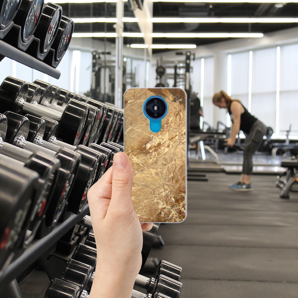 Dit design hoesje met Marmer in lichtbruine kleur is voor de artistiekelingen onder ons. De Grieken en Romeinen wisten het marmer al te waarderen door het in de bouw toe te passen. Naast het witte marmer zijn de diverse soorten marmer in een gevarieerde kleurensamenstelling te krijgen. We hebben verschillende mooie kleuren op design hoesjes gezet, zoals in dit geval het lichtbruine marmer. Dit is een Nokia 1.4 TPU Siliconen Hoesje met marmer in lichtbruine kleur. Het marmer wordt bedrukt op de voorkant van een tpu case, die beschikt over opstaande randen aan de voorkant en heel goed combineert met een screenprotector van glas of van folie. Door de rijkdom aan kleuren en varianties in afwerking kunnen ontwerpers met marmer schitterende architectonische projecten realiseren. Wij hebben hetzelfde gedaan en onze ontwerper veel vrijheid geboden. Het resultaat zie je terug in deze tpu case met lichtbruin marmer, die jouw smartphone goed beschermt. De zijkanten van de case worden niet bedrukt met het lichtbruine marmer.