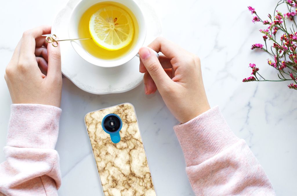 Deze Nokia 1.4 TPU Siliconen Hoesje met Marmer Goud is het waard om een blokje voor om te rijden. Dit is overigens niet nodig. Als je het hoesje met goud marmer nu bestelt heb je het zeer snel in huis. Je kunt er bij wijze van spreken thuis op gaan zitten wachten. Je hebt diverse soorten marmer. We hebben enkele fraaie kleuren op onze hoesjes gezet, zoals in dit geval het gouden marmer. Het goud marmer wordt bedrukt op de achterkant van de tpu case, die beschikt over alle nodige uitsparingen waardoor je alle knoppen en poorten van je smartphone kunt bedienen. Verder is de case met goud marmer gemaakt van zeer flexibel materiaal. De rijkheid aan kleuren en varianties in afwerking is een schitterende eigenschap van marmer. Dit tpu hoesje met goud marmer heeft ook veel schitterende eigenschappen en is de ideale bescherming voor jouw smartphone.