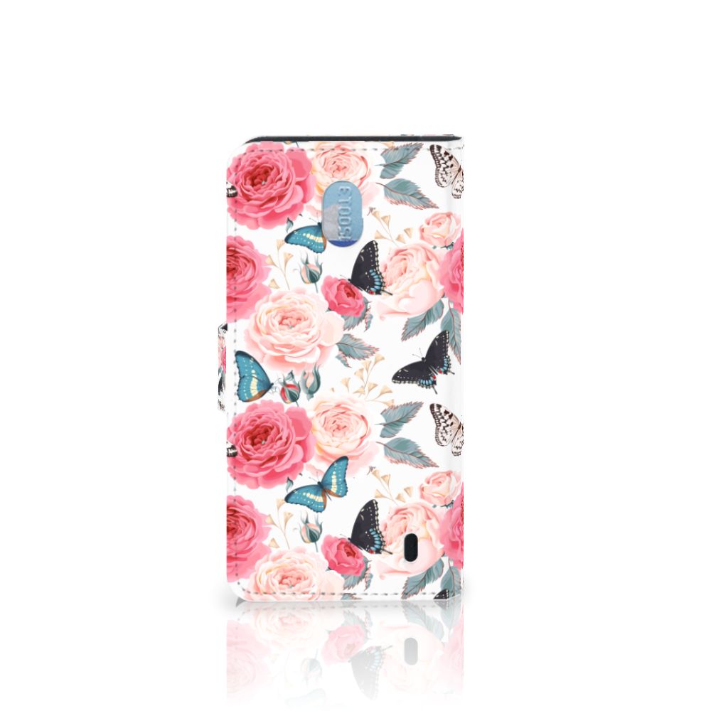 Nokia 1 Plus Hoesje gemaakt van TPU en kunstleer Butterfly Roses