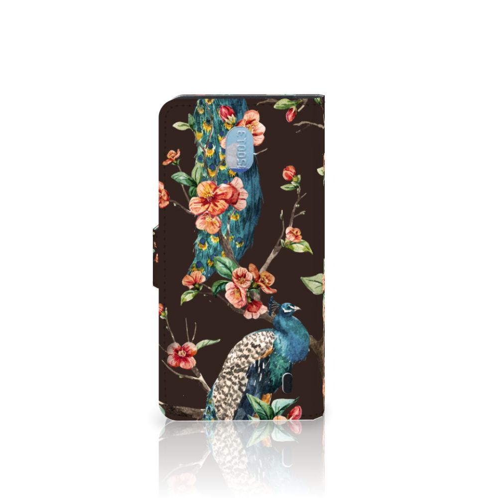 Nokia 1 Plus Telefoonhoesje sluit met magnetisch lipje Pauw | Bloemen