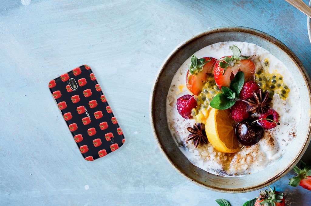 Er zit pit in jouw Nokia 1 Siliconen Case dankzij dit design met rode paprika’s. Paprika’s zijn er in allerlei kleuren en vormen en ze hebben gemeen dat ze heel erg gezond zijn. De rode paprika’s op deze case staan op een grijs met witte geblokte achtergrond en vormen een opvallende verschijning. Heb jij ooit iemand in je nabije omgeving rond zien lopen met een design hoesje met rode paprika’s? Waarschijnlijk niet. Dit hoesje wordt alleen aan de bovenkant bedrukt met paprika’s en is zeer flexibel. De randen van het hoesje blijven transparant en worden niet bedrukt. Met dit hoesje past jouw telefoon altijd in je broekzak. Zeker weten dat je met dit hoesje met rode paprika’s een smartphone accessoire te pakken hebt waarmee je jezelf in de schijnwerpers zet. Als je andere kleuren paprika’s op je hoesje wilt, raden we je aan ons assortiment design hoesjes te bekijken of zelf een hoesje te ontwerpen.