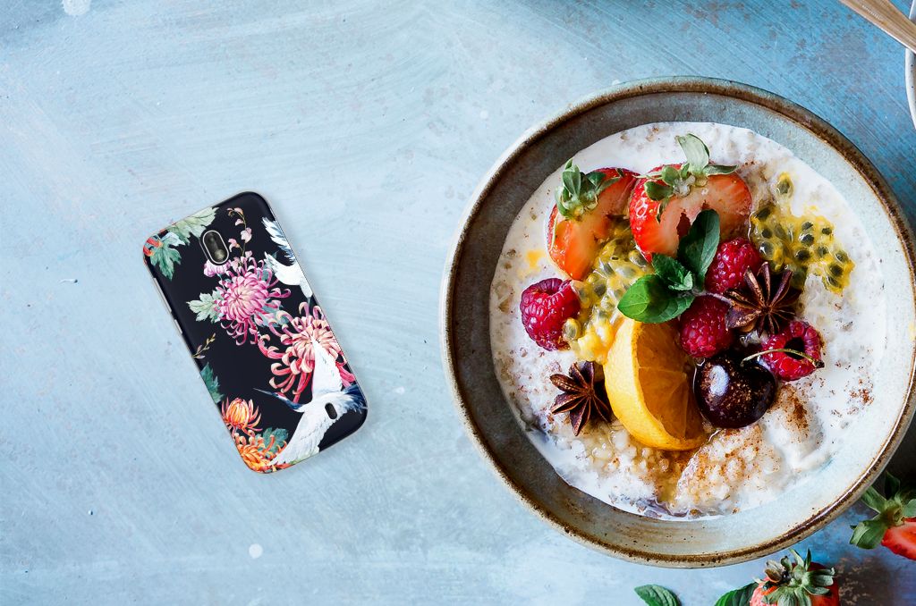 Verspreid over de hele wereld leven 19 soorten ooievaars. De spanwijdte – dat is de afstand van vleugeltip tot vleugeltip – van een volwassen ooievaar kan 2.50 meter bedragen. De gebieden waarin de ooievaar broedt, liggen in heel Europa, het Midden-Oosten, West- en Centraal-Azië en Noordwest-Afrika. Het ideale leefgebied van de ooievaar is een half open tot open landschap met veel afwisseling in grondgebruik en begroeiing. De begroeiing op dit design hoesje, in allerlei verschillende kleuren, zal niet alleen voor de ooievaars fraai zijn. Jij zult er zelf ook heel vrolijk van worden. Het in het oog springende design staat op een TPU Hoesje. Dit telefoonhoesje wordt alleen aan de bovenkant bedrukt en is zeer flexibel. De randen van het hoesje blijven transparant en worden niet bedrukt. Met dit hoesje past jouw Nokia 1 altijd in je broekzak.