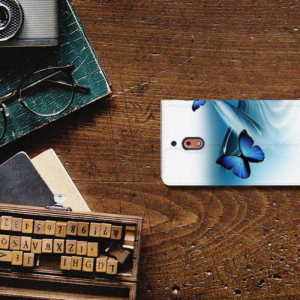 Deze vrolijke Nokia 2.1 2018 Hoesje maken met blauwe vlinders is een ware eyecatcher. De meeste vlinders hebben een onopvallende vleugelkleur, andere soorten hebben juist heldere en felle kleuren. Wij kunnen deze blauwe vlinders op een zeer handige stand case zetten. Deze hoesjes zijn het meest gewild. Met onze geavanceerde printer zetten we de afbeelding van vlinders op alle zijden van het hoesje. De case met vlinders heeft aan de binnenkant een houder waarin je jouw creditcard of ander pasje kwijt kunt. De case heeft bovendien een handige standaard. Verder is je telefoon natuurlijk maximaal beschermd met deze stand case met print van blauwe vlinders. De houder aan de binnenzijde van het design hoesje met vlinder print is van TPU.