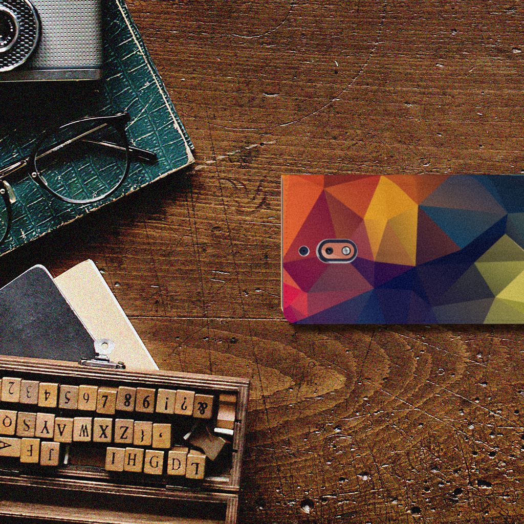 Veelkleurige driehoeken die samen eindeloze asymmetrische patronen lijken te vormen. Het is het abstracte schouwspel dat op dit fraaie hoesje voor je Nokia 2.1 2018 direct de aandacht trekt noemen we voor het gemak trekt noemen we voor het gemak Polygon Color. De een ziet er een berglandschap in, de ander piramides. Wat zie jij erin? Zeker is in elk geval dat de aanblik van dit fascinerende ontwerp je niet snel gaat vervelen. Het kleurige spel van lijnen en vlakken blijft eindeloos boeien en geeft jouw Stand Case een hippe en kunstzinnige uitstraling. De kracht die het lijnenspel uitstraalt, komt ook terug in het hoesje zelf. De solide hoes van PU-leer beschikt ook over een 1 pashouder en een speciale standaard. Het hoesje wordt afgesloten met een magneet aan de binnenzijde. De houder aan de binnenzijde is van TPU. Alle zijden worden bedrukt.