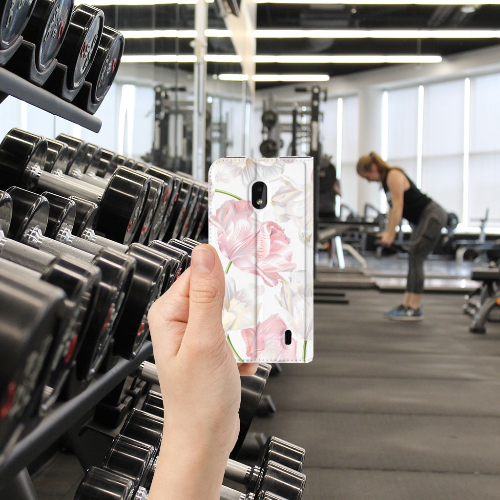 Een bosje bloemen doet een mens (en zijn smartphone) goed. De witte en roze bloemen op dit Nokia 2.2 Smart Cover geven jouw smartphone een zeer mooie uitstraling. Je wordt er ook meteen een stuk rustiger van als je aan het appen of aan het bellen bent. Valt dan je telefoon op de grond, dan zal er dankzij de stand case met het design Lovely Flowers ontstaan. Onze stand cases met roze en witte bloemen zien er zeer prettig uit en zijn heel praktisch, wat blijkt uit onder meer het vakje aan de binnenkant en de handige standaard waarmee je de smartphone rechtop op tafel neer kunt zetten. De roze en witte bloemen passen goed op alle zijden van de case. Op deze stand case van leer en TPU (houder aan de binnenkant) kun je trouwens ook je eigen bloemige ontwerp zetten. In een paar simpele stappen maak je zelf een stand hoesje met daarop jouw mooiste bloemen.