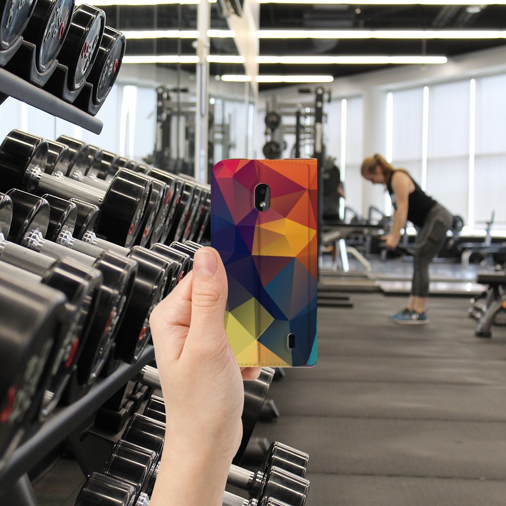 Veelkleurige driehoeken die samen eindeloze asymmetrische patronen lijken te vormen. Het is het abstracte schouwspel dat op dit fraaie hoesje voor je Nokia 2.2 direct de aandacht trekt noemen we voor het gemak trekt noemen we voor het gemak Polygon Color. De een ziet er een berglandschap in, de ander piramides. Wat zie jij erin? Zeker is in elk geval dat de aanblik van dit fascinerende ontwerp je niet snel gaat vervelen. Het kleurige spel van lijnen en vlakken blijft eindeloos boeien en geeft jouw Stand Case een hippe en kunstzinnige uitstraling. De kracht die het lijnenspel uitstraalt, komt ook terug in het hoesje zelf. De solide hoes van PU-leer beschikt ook over een 1 pashouder en een speciale standaard. Het hoesje wordt afgesloten met een magneet aan de binnenzijde. De houder aan de binnenzijde is van TPU. Alle zijden worden bedrukt.