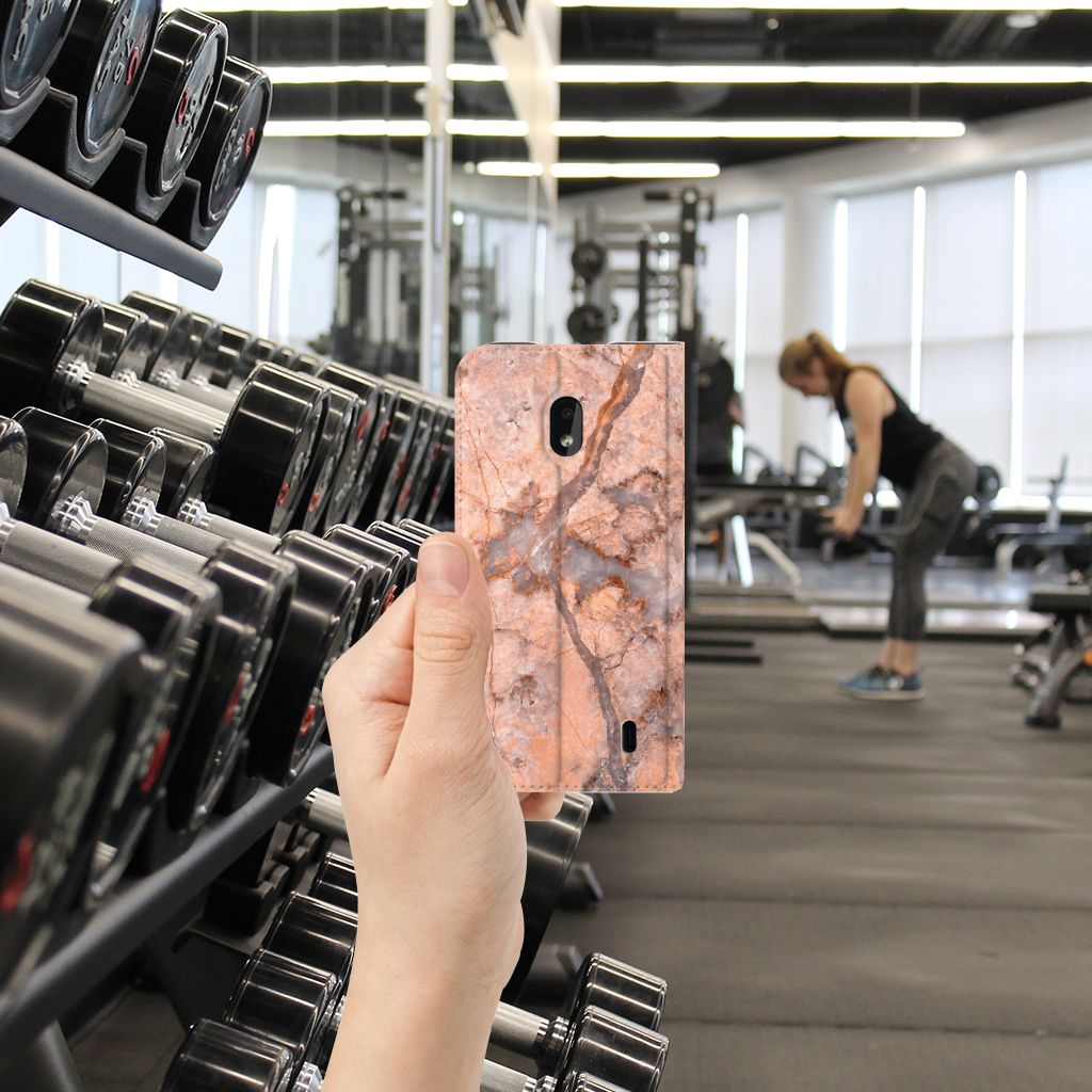 Dit design hoesje met Marmer Oranje is zeer geschikt voor jouw kostbare telefoon. Vanwege zijn prachtige lichtval en vastheid is marmer een zeer gewild bouwmateriaal. Wij kunnen inmiddels concluderen dat dit hoesje met oranje marmer ook zeer gewild is. Beloon jezelf en je telefoon met dit hele mooie Nokia 2.2 Standcase. Naast het oranje marmer zijn er de diverse marmersoorten in een ruim kleurenpallet te krijgen. Deze stand case met marmer in oranje wordt bedrukt op alle zijden. De case beschikt over een vakje voor een pasje en toebehoren en een magnetische sluiting aan de binnenzijde. Verder heeft de case in oranje marmer een houder van TPU. Wij hebben onze designer veel vrijheid gegeven met het ontwerpen dit mooie hoesje. Het resultaat zie je terug in deze stand case met oranje marmer, dat de ideale bescherming is voor jouw smartphone. Des te mooi dat wij voor variatie hebben gekozen door een hoesje met oranje marmer aan de bieden.