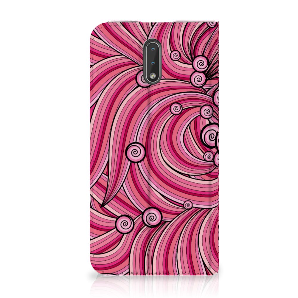 Nokia 2.3 Stand Case Zwart Roze Vormen
