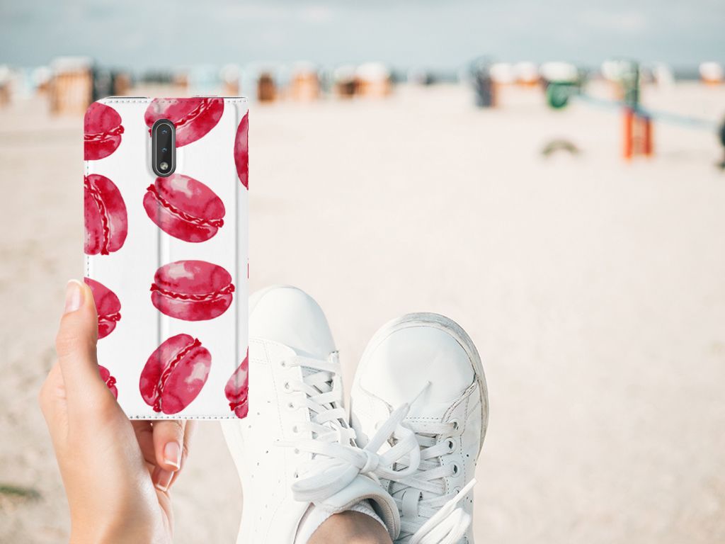 Dit stand hoesje met Pink Macarons is een zeer opvallende bescherming voor jouw smartphone. Macarons zijn Franse koekjes: kleine, rond en luchtig. Ze worden in veel verschillende smaken gemaakt, herkenbaar aan de verschillende kleuren zoals chocolade (donkerbruin), mokka (middenbruin), kersen (rood), pistache (groen), aardbei (roze), framboos (karmijn). Deze kleuren kun je net allemaal zien op dit fraaie design hoesje met roze macarons. Heb je altijd al een Nokia 2.3 Flip Style Cover willen hebben met roze macarons? Grijp dan nu je kans. Deze case heeft zeer veel goede eigenschappen, zoals 1 opbergvakje en een magnetische sluiting aan de binnenkant. Dit design hoesje met roze macarons wordt aan alle zijden bedrukt. De houder aan de binnenkant van het hoesje is van TPU. De case heeft ook een handige standaard.