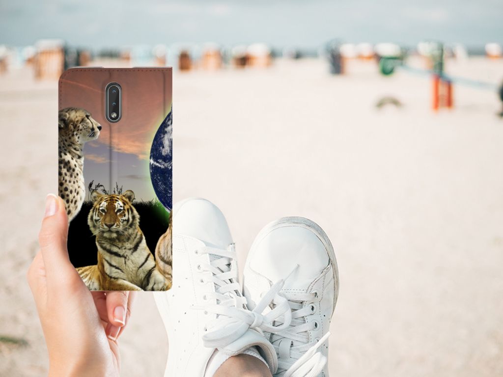 Deze standcase met roofdieren kan exclusief in het bezit van jou komen. Bovendien kun je hier zelf nog unieke teksten en/of beelden aan toevoegen. Je Hoesje maken krijgt dan een unieke identiteit. Roofdieren zoals tijgers op dit hoesje zijn voortdurend op zoek naar een geschikte prooi. De tijgers met aardbol op de achtergrond op deze stand case geven jouw Nokia 2.3 een hele stoere uitstraling. Deze bijzondere case is van PU-leer (buitenzijde) en TPU (binnenzijde) en beschikt over een houder en een speciale standaard. Verder is deze stand case met roofdieren voorzien van een magnetische sluiting aan de binnenzijde. Je zorgt voor de perfecte bescherming van je smartphone met dit design hoesje met roofdieren met aardbol op de achtergrond.