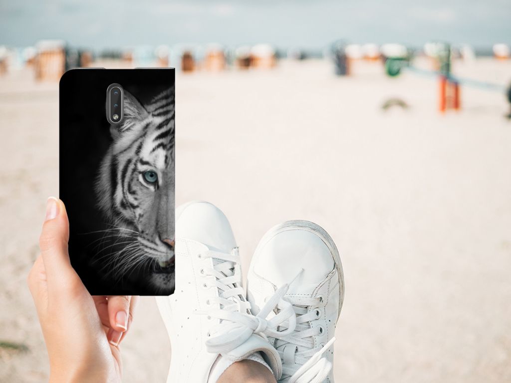 Omdat de Witte Tijger zo bijzonder is, zijn wij bereid deze voor zeer lage kosten op een stand case te zetten. Dit kunnen we zo goedkoop doen omdat we het drukwerk in eigen beheer doen. Witte tijgers leefden lange tijd in de bossen van India, Bangladesh, Nepal, Bhutan en China en kunnen wel 257 kilo wegen. Dit zwaargewicht kunnen we bedrukken op verschillende soorten hoesjes, zoals deze stand cases. Het Nokia 2.3 Hoesje maken is van PU-leer (buitenzijde) en TPU (binnenzijde) en beschikt over een houder voor pasjes en briefgeld. Verder is dit hoesje met witte tijger print voorzien van magneten aan de binnenzijde. Tegenwoordig zijn witte tijgers alleen in gevangenschap te bewonderen. Jij zorgt voor de perfecte bescherming van je smartphone met dit design hoesje met witte tijger.