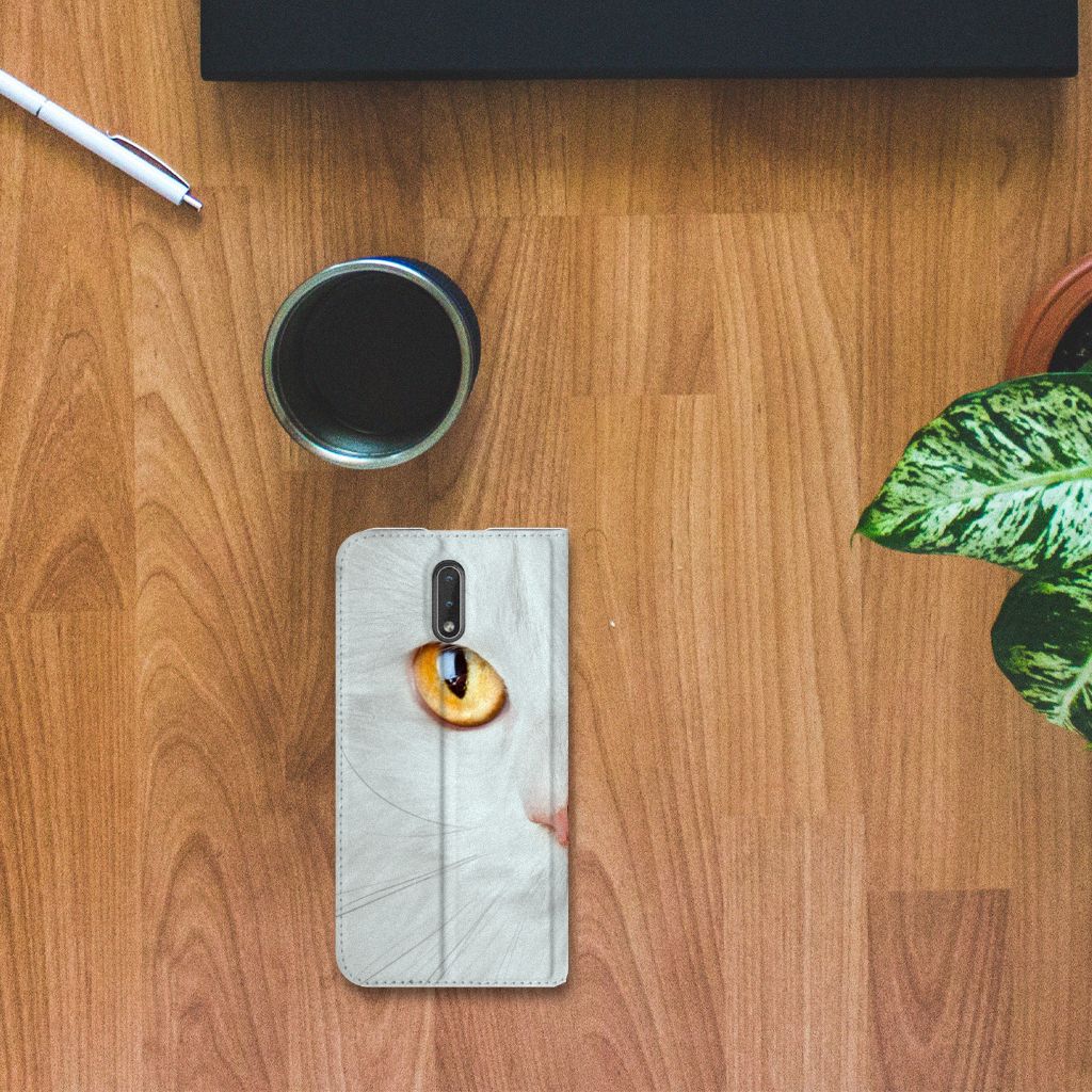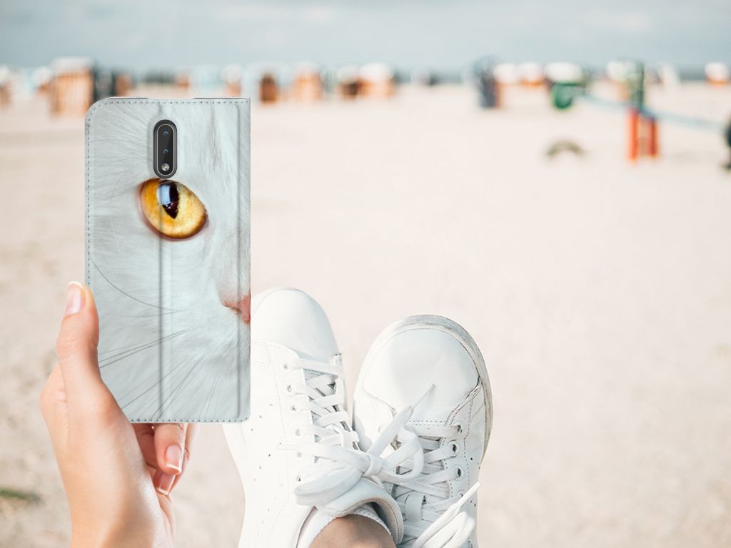 Witte katten zijn natuurlijk extra speciaal, vandaar we een exemplaar op een design hoesje hebben gezet. Een witte kat schijnt trouwens ook slechter te kunnen horen dan katten met een andere kleur. Deze witte kat staat op een zeer prominente wijze op een stand case. Deze stand case met witte kat ziet er geweldig uit en is voorzien van verschillende uitsparingen en een speciale standaard. Een Nokia 2.3 Hoesje maken met witte kat beschermt jouw smartphone perfect. Alle zijden van de case zijn bedrukt. Jouw smartphone wordt erg duurzaam met dit design hoesje. Het TPU aan de binnenzijde is zeer flexibel en het pu-leer oogt chique. Verder heeft de case een houder voor bijvoorbeeld je rijbewijs aan de binnenkant.