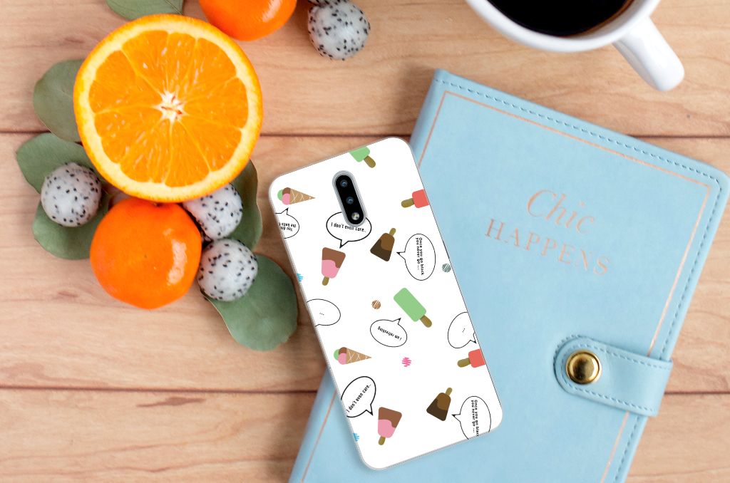 Van deze vrolijke Nokia 2.3 Siliconen Case met daarop verschillende soorten ijsjes met tekstwolkjes krijg je sowieso een vrij en zomers gevoel. De zomer komt naar je toe met deze print van ijsjes met tekstwolkjes. Ben je op het strand, dan ontbreekt een lekker ijsje natuurlijk niet. Net zoals je je smartphone bij de hand hebt, met daaromheen een design hoesje met bijzondere ijsjes en tekstwolkjes. Jouw telefoon kan dan de bescherming in de vorm van een tpu hoesje met ijsjes zeer goed gebruiken. De bovenkant van dit hoesje wordt bedrukt met ijsjes en tekstwolkjes, de zijkanten blijven doorzichtig. De case is gemaakt van schokabsorberend materiaal en past altijd in je broekzak. Onder alle weersomstandigheden zal deze TPU case perfect functioneren, ook in de zomer met een ijsje in je hand.