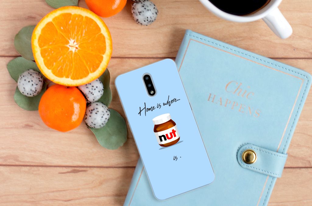 Ben je liefhebber van chocoladepasta, dan is dit het perfecte Nokia 2.3 Siliconen Case voor jou. De chocoladepasta is enorm populair, dus is het niet zo heel gek dat je een ‘Nut Home’ tpu case in een blauwe kleur aantreft in ons assortiment design hoesjes met illustraties. Dit tpu hoesje is zeer flexibel en past altijd in je broekzak. Alleen de bovenkant van dit hoesje wordt door ons bedrukt in blauwe kleur met de pasta, op zeer duurzame manier. Mensen die houden van de bekendste pasta van het moment, kiezen voor deze blauwe tpu case. Er staan geen illustraties op de zijkanten van een tpu case. Je kunt ook een eigen tekst toevoegen aan het opvallende design.