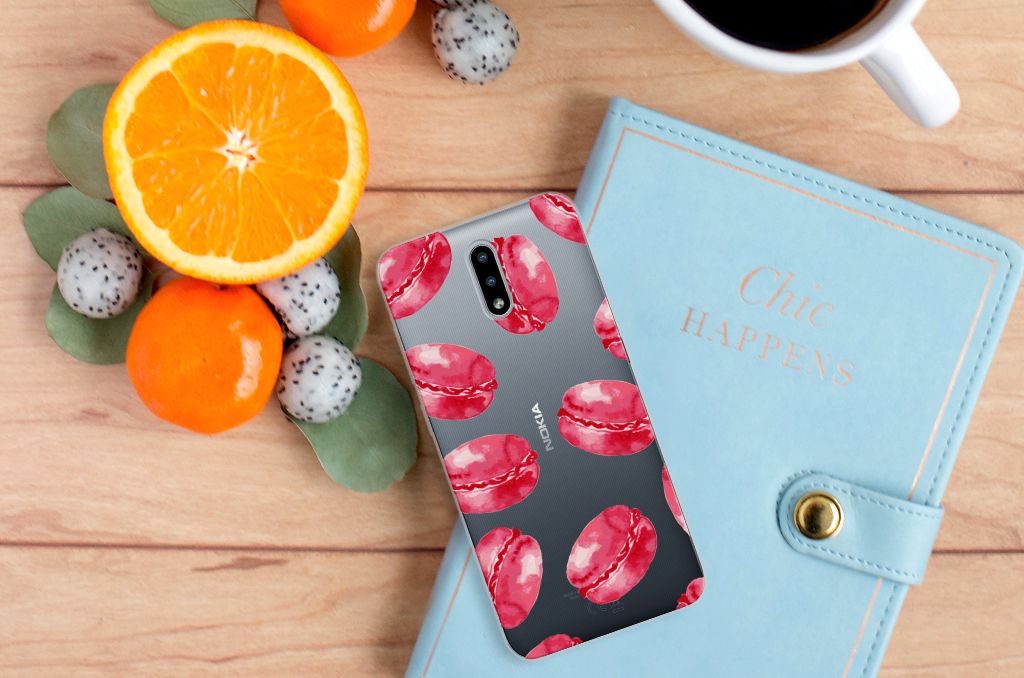 Dit tpu hoesje met Pink Macarons is een zeer opvallende bescherming voor jouw smartphone. Macarons zijn Franse koekjes: kleine, rond en luchtig. Ze worden in veel verschillende smaken gemaakt, herkenbaar aan de verschillende kleuren zoals chocolade (donkerbruin), mokka (middenbruin), kersen (rood), pistache (groen), aardbei (roze), framboos (karmijn). Deze kleuren kun je niet allemaal zien op dit fraaie design hoesje met roze macarons. Heb je altijd al een Nokia 2.3 Siliconen Case willen hebben met roze macarons? Grijp dan nu je kans. Deze case heeft zeer veel goede eigenschappen, zoals elastisch vermogen, flexibiliteit en schokbestendigheid. Dit design hoesje met roze macarons wordt aan de bovenkant bedrukt, de zijkanten blijven doorzichtig. De case heeft opstaande randen aan de voorzijde en beschermt samen met een screenprotector jouw telefoon perfect. De case heeft ook een handige standaard.