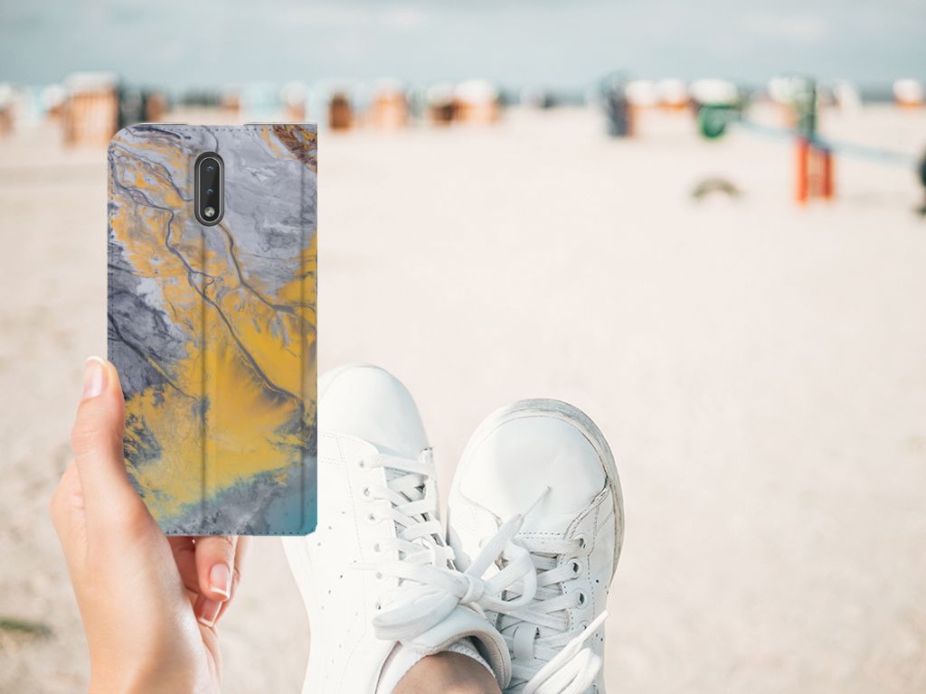 Deze Nokia 2.3 Standcase met Marble Blue Gold is het waard om een blokje voor om te fietsen. Dit is echter helemaal niet nodig. Als je het hoesje met marmer blauw met goud nu bestelt heb je het supersnel in huis. Je kunt er bij wijze van spreken voor de brievenbus op blijven wachten. Je hebt diverse marmersoorten in veel verschillende kleuren. We hebben enkele mooie kleuren op design hoesjes gezet, zoals in dit geval marmer blauw met goud. Het marmer wordt bedrukt op alle zijden van de stand case, die beschikt over een vakje voor pasjes of briefgeld en een magnetische sluiting aan de binnenzijde. Verder heeft de case met marmer blauw met goud een houder van TPU. De rijkheid aan kleuren en variaties in afwerking is een fraaie eigenschap van marmer. Dit stand hoesje met marmer blauw met goud heeft ook veel schitterende eigenschappen en is de ideale bescherming voor jouw smartphone.