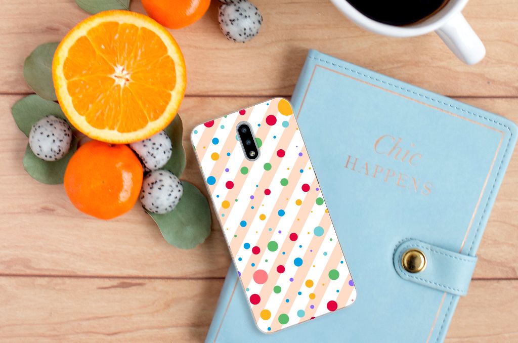 Een Nokia 2.3 TPU bumper met verschillende kleuren stippen is een schitterende bescherming van jouw smartphone. De tpu case met het design Dots in alle kleuren van de regenboog komt voor jou als geroepen. Maak je geen gebruik van dit zeer mooie hoesje, dan kan het met jouw smartphone een beetje beroerd aflopen. Deze mooie tpu case met verschillende soorten klompen in verschillende kleuren is zo’n beetje de meest flexibele case die er bestaat. Het hoesje met stippen zorgt voor een goede bescherming van je smartphone, vooral aan de achterzijde en zijkanten. Met een tpu hoesje met stippen in verschillende kleuren blijft jouw gsm volledig in tact. Heb je liever een tpu case met stippen in andere opvallende kleuren? Ontwerp dan zelf een tpu case met je eigen foto’s en teksten! De case wordt aan de achterzijde bedrukt met klompen, de zijkanten blijven doorzichtig.