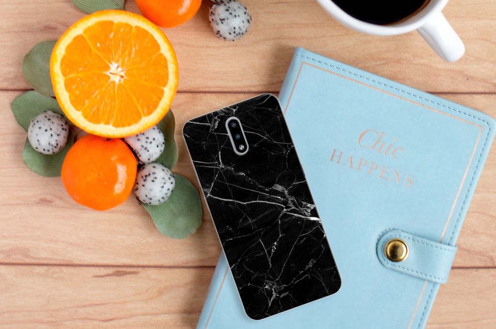 Dit design hoesje met Marmer Zwart is voor de artistieke personen onder ons. De Grieken en Romeinen wisten het materiaal al te waarderen door het in de bouw toe te passen. Naast het witte marmer met haar zacht grijze geaderde belijning zijn de diverse soorten in een gevarieerd kleurenpallet te krijgen. We hebben mooie kleuren op design hoesjes gezet, zoals in dit geval zwart marmer. Dit is een Nokia 2.3 TPU Siliconen Hoesje met marmer in bruine kleur. Het marmer wordt bedrukt op de voorkant van een tpu case, die beschikt over opstaande randen aan de voorkant en heel goed combineert met een screenprotector van glas of van folie. De rijkdom aan kleuren en varianties in afwerking geeft ontwerpers de vrijheid om met marmer hele mooie architectonische projecten te realiseren. Wij hebben onze designer tevens veel vrijheid gegeven. Het resultaat zie je terug in deze tpu case met zwart marmer, die jouw smartphone goed beschermt. De zijkanten van de case worden niet bedrukt met het zwarte marmer.