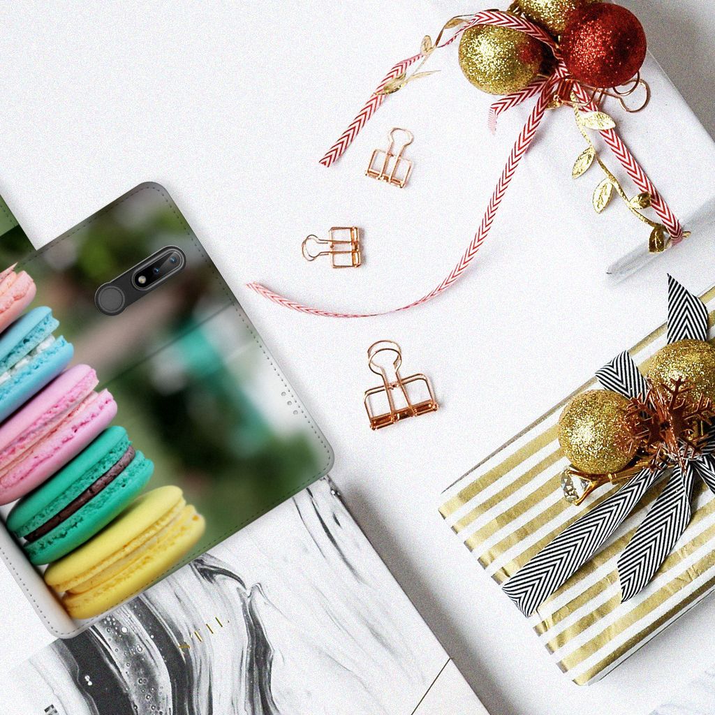 Dit hoesje met macarons is een zeer opvallende bescherming voor jouw smartphone. Macarons zijn Franse koekjes: kleine, rond en luchtig. Ze zijn aan elkaar geplakt met een zachte vulling. Ze worden in veel verschillende smaken gemaakt, herkenbaar aan de verschillende kleuren zoals chocolade (donkerbruin), mokka (middenbruin), kersen (rood), pistache (groen), aardbei (roze), framboos (karmijn), citroen (geel) en kokos (roomwit). Deze kleuren kun je natuurlijk ook zien op dit fraaie design hoesje met macarons. Heb je altijd al een Nokia 2.4 Book Cover willen hebben met macarons? Grijp dan nu je kans. Een boekhoesje heeft zeer veel goede eigenschappen, zoals opbergvakjes aan de binnenkant en een magnetische sluiting in de vorm van een lipje aan de buitenzijde. Dit design hoesje met macarons wordt aan alle zijden bedrukt, zelfs het lipje krijgt een afbeelding van een macaron. De houder aan de binnenkant van het hoesje is van TPU.