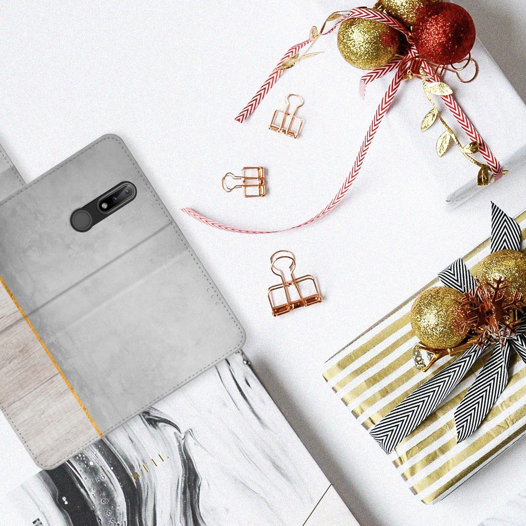 Nokia 2.4 Bookstyle Case met pasjes Wood Concrete