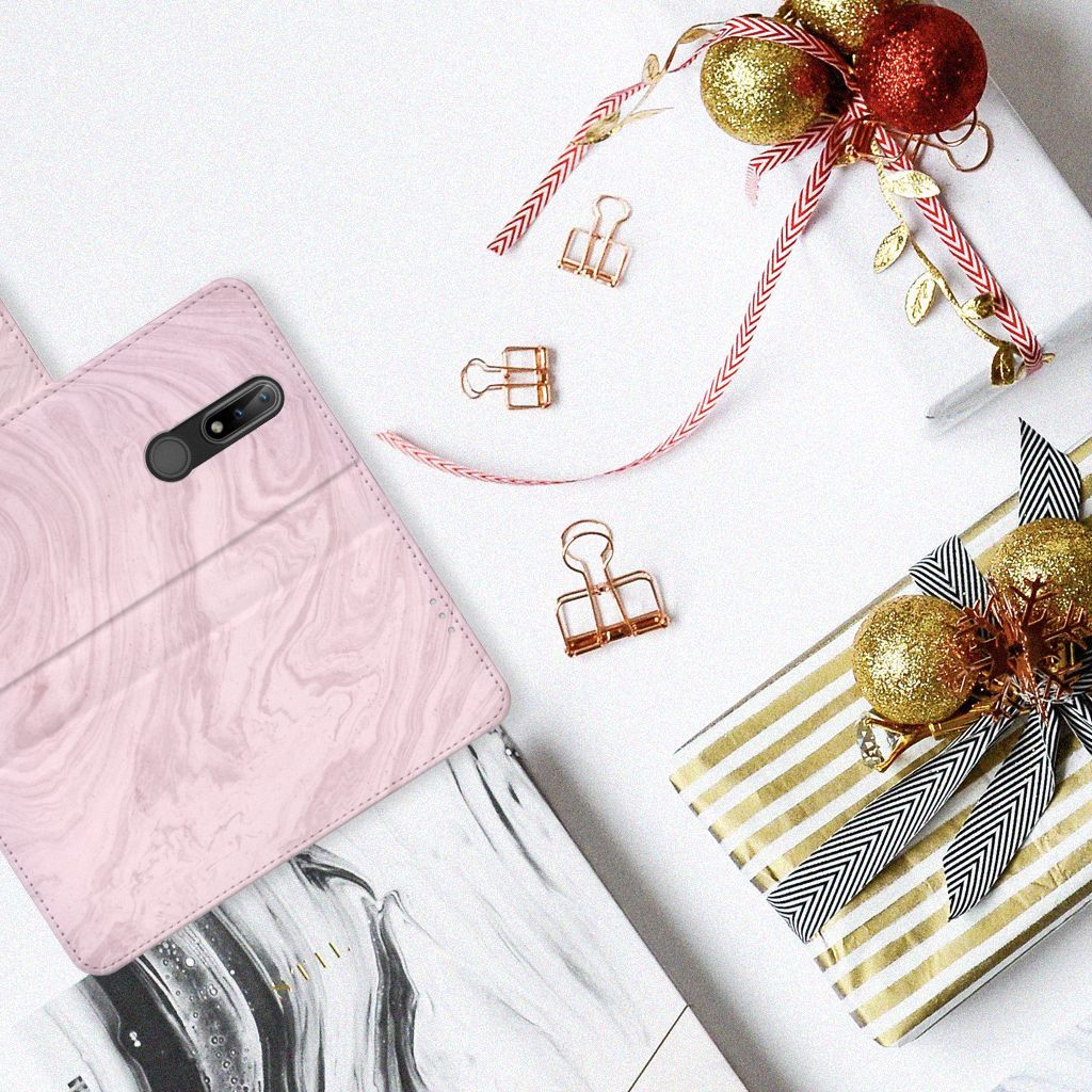 Nokia 2.4 Bookcase met magnetische sluitclip Marble Pink