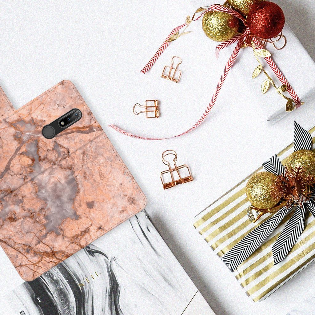 Nokia 2.4 Bookcase met pasjes Marmer Oranje