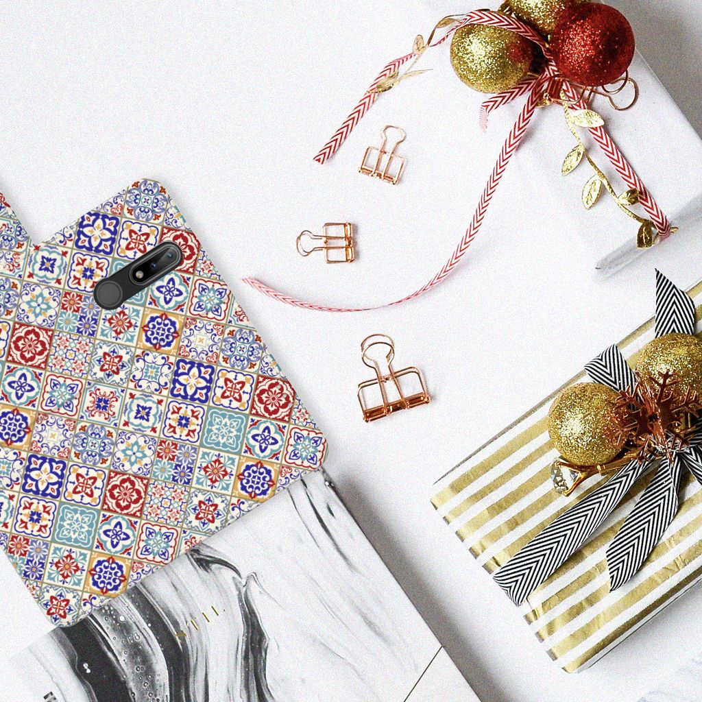 Nokia 2.4 TPU Siliconen Hoesje Flower Tiles
