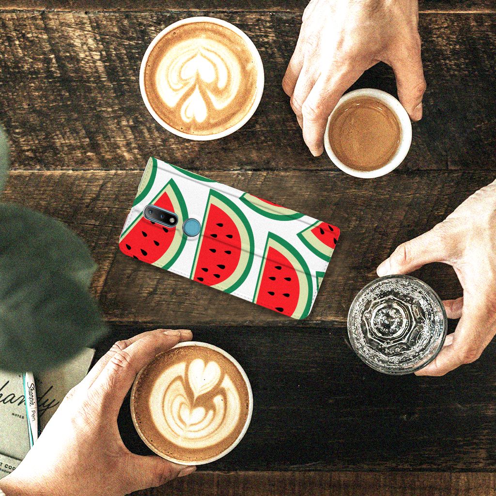 Watermeloenen zijn uitstekende dorstlessers, misschien dat je daarom juist in de zomermaanden extra enthousiast raakt van dit design hoesje Watermelons. Jij blijft gezond als je zo nu en dan een watermeloen neemt, jouw smartphone blijft in tact als je er deze Nokia 2.4 Flip Style Cover omheen doet. De stand case beschermt jouw telefoon aan alle kanten en beschikt over een 1 opbergvakje en een speciale standaard. Het hoesje wordt afgesloten met een magneet aan de binnenzijde. De houder aan de binnenzijde is van TPU. Je kunt ook kiezen voor andere soorten fruit op je hoesje. Kijk maar eens naar onze andere design hoesjes op onze website.