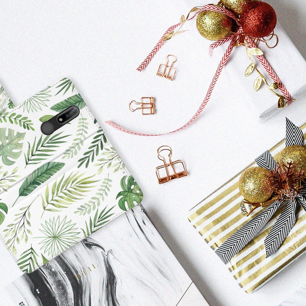 Nokia 2.4 Hoesje met ruimte voor pasjes Leaves