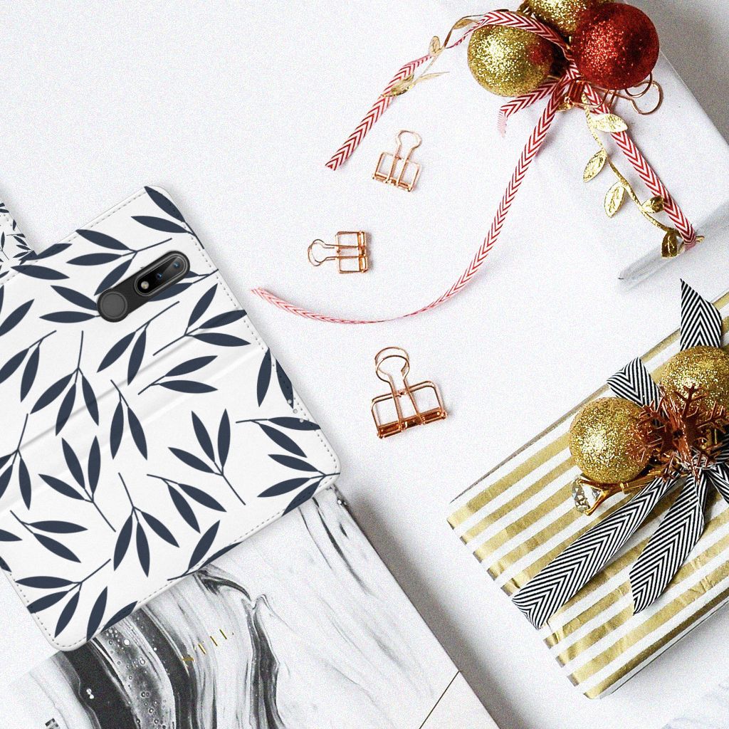 Nokia 2.4 Hoesje met magnetische lipje als sluiting Leaves Blue