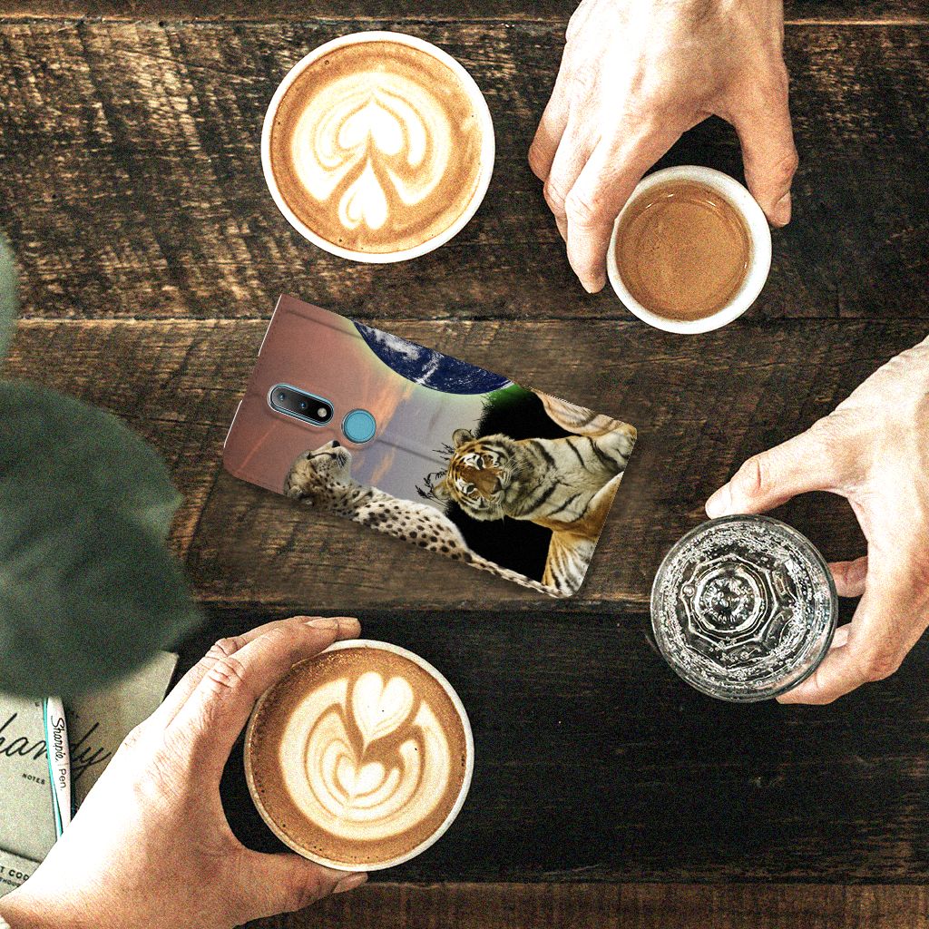 Deze standcase met roofdieren kan exclusief in het bezit van jou komen. Bovendien kun je hier zelf nog unieke teksten en/of beelden aan toevoegen. Je Hoesje maken krijgt dan een unieke identiteit. Roofdieren zoals tijgers op dit hoesje zijn voortdurend op zoek naar een geschikte prooi. De tijgers met aardbol op de achtergrond op deze stand case geven jouw Nokia 2.4 een hele stoere uitstraling. Deze bijzondere case is van PU-leer (buitenzijde) en TPU (binnenzijde) en beschikt over een houder en een speciale standaard. Verder is deze stand case met roofdieren voorzien van een magnetische sluiting aan de binnenzijde. Je zorgt voor de perfecte bescherming van je smartphone met dit design hoesje met roofdieren met aardbol op de achtergrond.