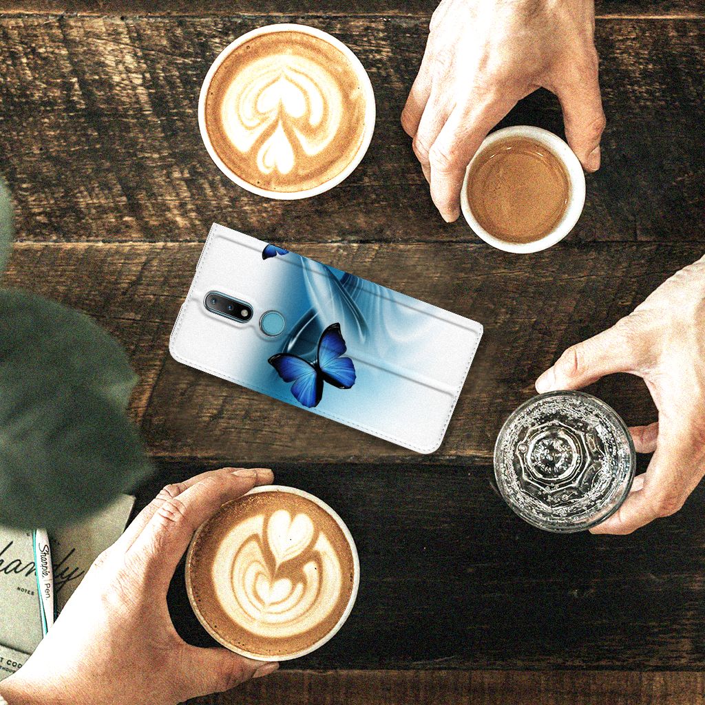 Deze vrolijke Nokia 2.4 Hoesje maken met blauwe vlinders is een ware eyecatcher. De meeste vlinders hebben een onopvallende vleugelkleur, andere soorten hebben juist heldere en felle kleuren. Wij kunnen deze blauwe vlinders op een zeer handige stand case zetten. Deze hoesjes zijn het meest gewild. Met onze geavanceerde printer zetten we de afbeelding van vlinders op alle zijden van het hoesje. De case met vlinders heeft aan de binnenkant een houder waarin je jouw creditcard of ander pasje kwijt kunt. De case heeft bovendien een handige standaard. Verder is je telefoon natuurlijk maximaal beschermd met deze stand case met print van blauwe vlinders. De houder aan de binnenzijde van het design hoesje met vlinder print is van TPU.