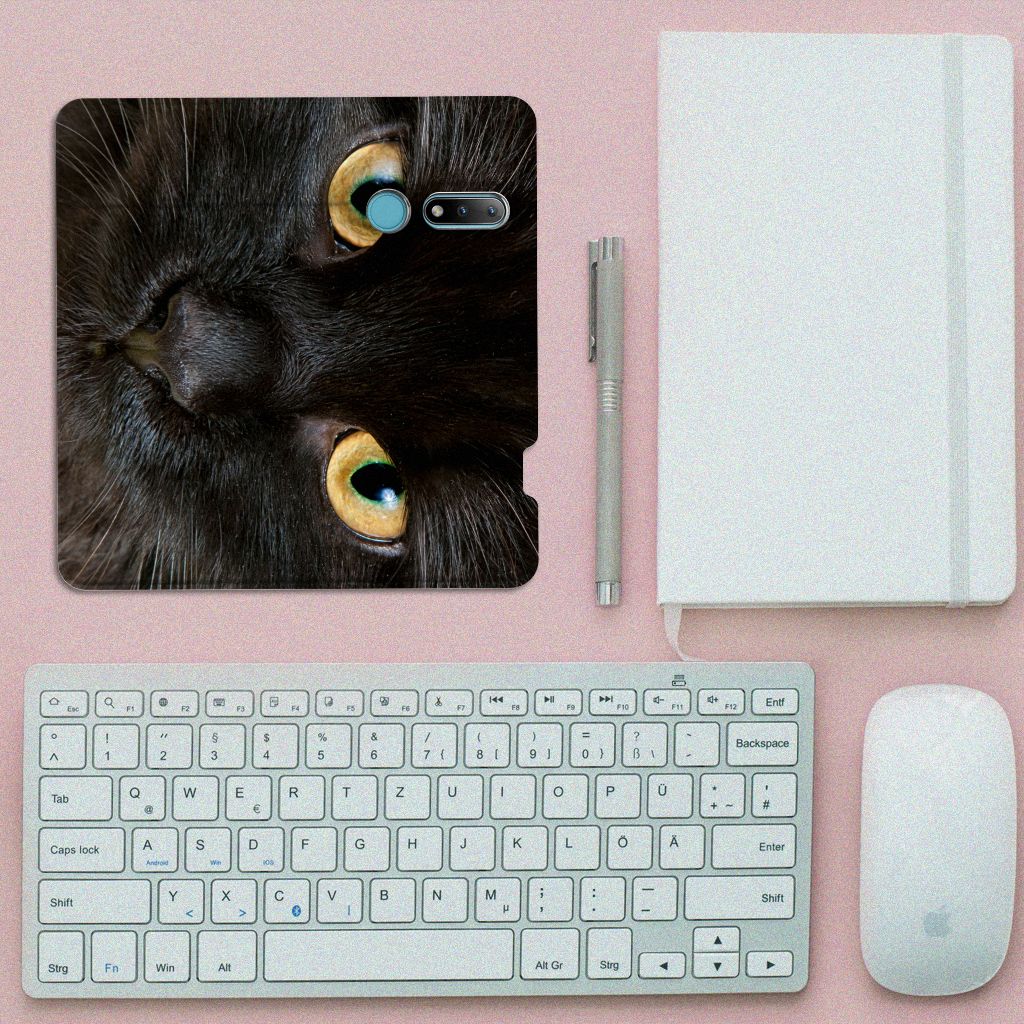 warte katten zijn heel speciaal, vandaar we een exemplaar op een design hoesje hebben gezet. Een zwarte kat schijnt bijvoorbeeld veel beter te kunnen horen dan witte katten. Deze zwarte kat staat op zeer prominente wijze op een stand case. Een Nokia 2.4 Hoesje maken met zwarte kat beschermt jouw smartphone aan alle zijden en wordt ook volledig bedrukt. De stand case met zwarte kat ziet er geweldig uit en is voorzien van verschillende uitsparingen en een speciale standaard. Alle zijden van de case zijn bedrukt. Dit design hoesje is van TPU aan de binnenzijde en zeer flexibel. Verder heeft de case een houder voor een pasje.