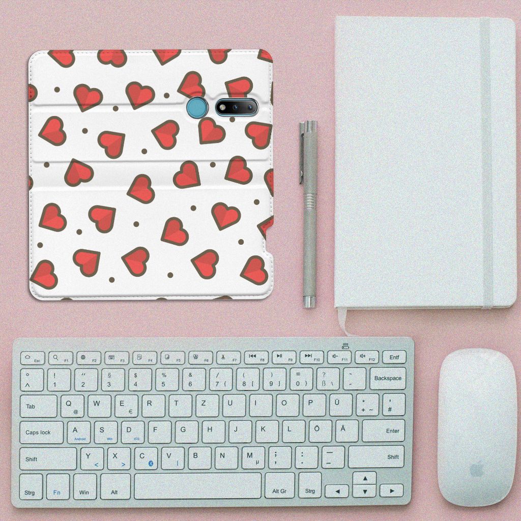 Met deze Nokia 2.4 Hoesje met Magneet met hartjes op een grijs met witte achtergrond maak jij een goede beurt als je dit cadeau geeft aan je vriend of vriendin. Bekroon je liefde voor elkaar met deze hele mooie stand case, die jouw telefoon aan alle zijden beschermt. Dit is echt een prachtige manier om je telefoon te beschermen. Het stand hoesje met design met Hearts is ook nog eens zeer praktisch, mede door het aan de binnenzijde en de standaard. De houder aan de binnenkant is van TPU, dus jouw smartphone kan met dit hoesje met hartjes op een grijs met witte achtergrond geen kant op. Dit is een hoesje om verliefd op te worden. Zonde om dit product aan je voorbij te laten gaan. Waarschijnlijk krijg je er eeuwig spijt van. Voor een habbekrats is dit hoesje met hartjes op een grijs met witte achtergrond te bestellen op onze website.