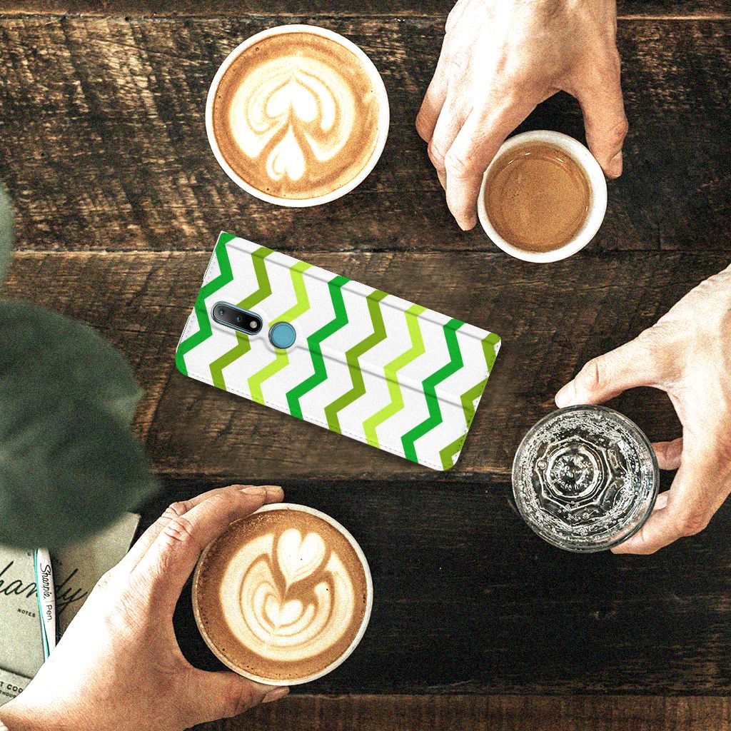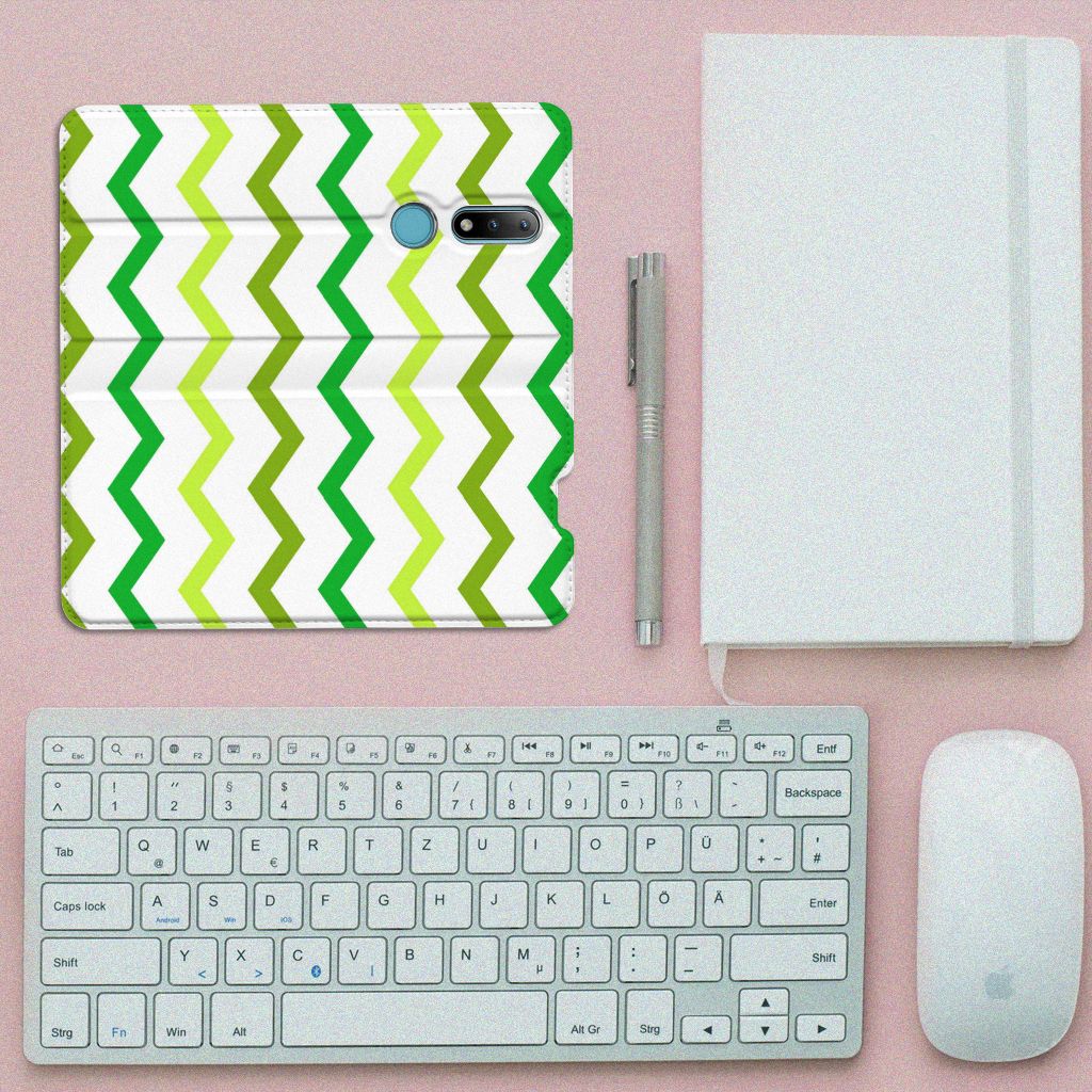 Dit zigzag groen design hoesje is speciaal ontworpen voor jouw telefoon. We hebben bewust verschillende stijlen groen gebruikt, zodat er voldoende sprake is van variatie. Dit groene hoesje ziet er super strak uit. Dat kan ook niet anders, als je weet dat onze designer zijn creativiteit heeft gebruikt. Hij schudt voortdurend nieuwe designs uit zijn mouw en dit zigzag groene hoesje is een van zijn fraaiste creaties. Een heel tof Nokia 2.4 Hoesje met Magneet, al zeggen we het zelf. Valt dit Zigzag Groen design hoesje goed bij jou? Bestel het dan vandaag nog en je hebt het morgen in huis. Het design staat op een stand case. Deze case beschermt jouw telefoon aan alle kanten en beschikt over een 1 opbergvakje en een speciale standaard. Het hoesje wordt afgesloten met een magneet aan de binnenzijde. De houder aan de binnenzijde is van TPU. Alle zijden van de stand case worden bedrukt.