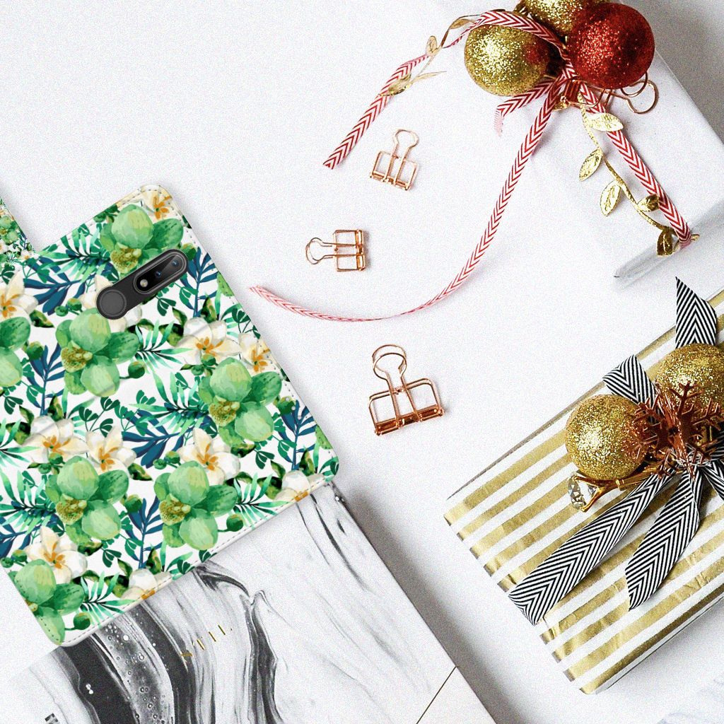 Nokia 2.4 Hoesje met ruimte voor drie pasjes Orchidee Groen