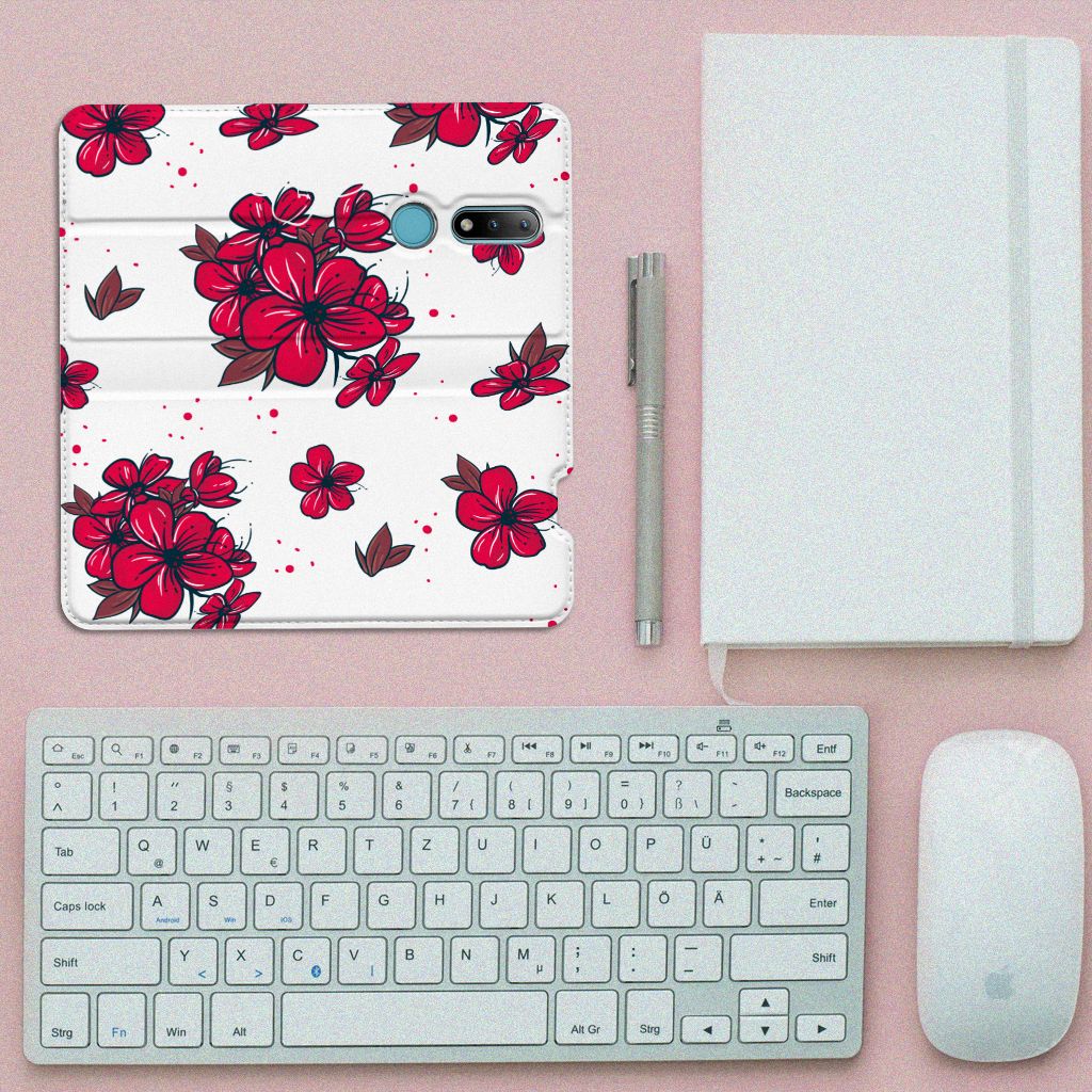 Wie denkt aan Japan, denkt al gauw aan die prachtige kersenbomen die in het begin van de lente in bloei staan en het land hullen in een prachtige zee van bloesem. Wie elke dag wil genieten van deze mooie kersenbloesem, kan natuurlijk ook kiezen voor dit mooie telefoonhoesje! Dankzij de witte achtergrond knallen de rode bloemetjes er mooi uit. Dit blossom red-design staat op een Smart Cover voor de Nokia 2.4. Dit populaire smartphonehoesje met het heeft één vakje voor een pasje of briefgeld en is aan alle zijden bedrukt. Met de standcase zet je je telefoon gemakkelijk neer, zodat je je handen vrij hebt als je bijvoorbeeld een video wilt kijken. De binnenkant van de standcase is van grijs PU-leer. Dat is fijn, omdat je daardoor niet snel vlekken ziet op je hoesje.